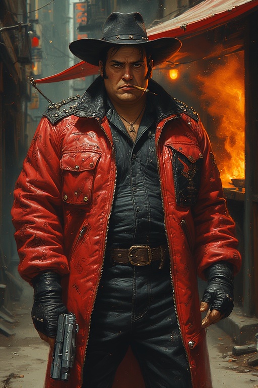 When violence comes—and it does, often—Kazpur doesn’t slip into armor or hide behind cover. He’s just as likely to strip to the waist, letting the enemy see what they’re actually dealing with. The fat that made him look slow in clothing is revealed to be barrel-chested powerlifter muscle, overbuilt shoulders and arms, and a midsection packed with woven Cybernetics and reinforced bone. Kazpur is a walking warning label.