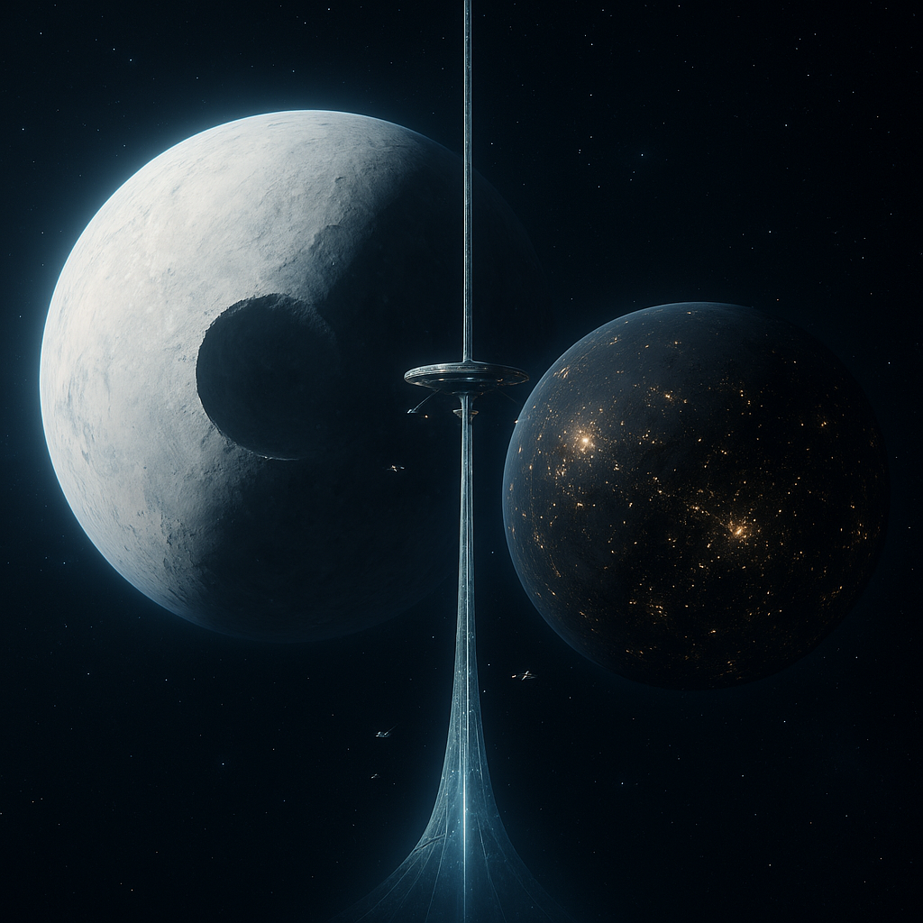 Orcus is a cold, dark dwarf planet at the edge of the Solar System, owned and administered under the joint stewardship of House Castaigne and the colony-governing AI Pheme. While the dwarf planet itself is harsh, airless, and only partially tapped by Stage I Terraforming, its rocky moon Vanth hosts the bulk of the population: tens of millions spread across dome-cities anchored in artificial gravity and recycled air. Very few—no more than a hundred—live on Orcus’s surface, tending to the space elevator, ice mines, and the array of monitoring stations near the Lens.