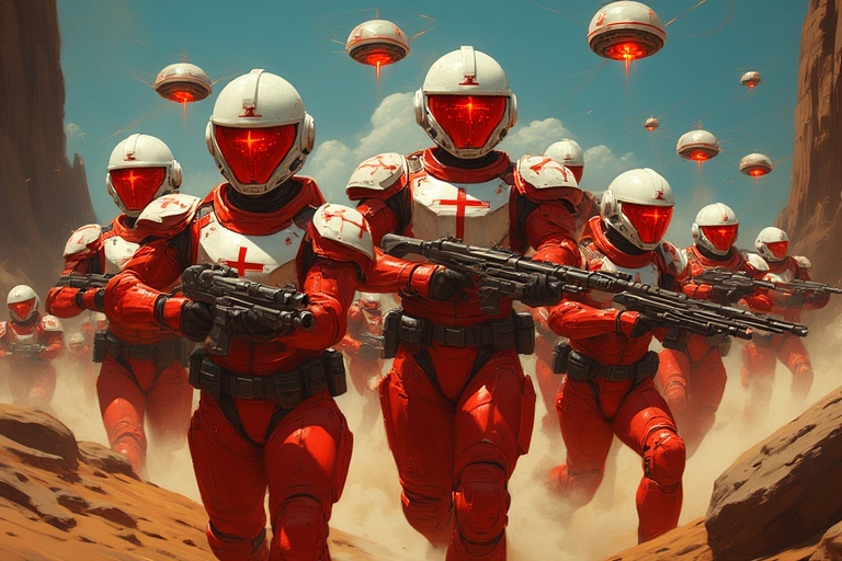 Bill Hopkins was never meant to become a crusader. Once a cloister-priest of the Seekers of Wisdom on Deimos, his life was one of modest ritual, quiet counsel, and gentle service. He ministered to a tiny chapel and offered stability to the lost children of a Mercy House—among them, a newly grown Claire Caldwell, bright-eyed and anxious about her future. Their lives changed in an instant when an illegal SMC subspace exploitation experiment ruptured into a sustained breach. The disaster consumed much of the surrounding colony in a tidal wave of possessed bodies and impossible geometries. Bill’s half-forgotten Astro-Landing Force training—nearly a year of instruction before his youthful buyout—combined with frantic catechisms to keep Claire and the orphans alive through a night that felt like an eternity. The children were later dispersed across the moons of Mars. Bill was left haunted. Claire was left galvanized.