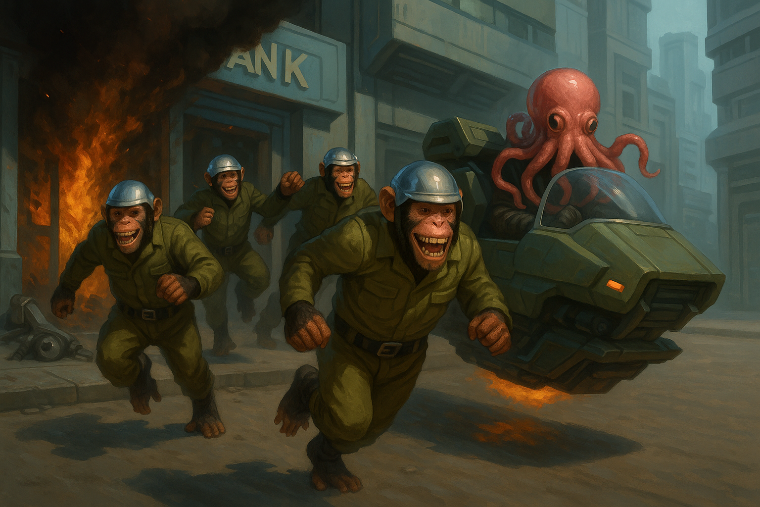 They are highly opportunistic, often allying with other Criminal or extremist factions in exchange for resources, Equipment, or safe harbor. Suspicion of other uplift species runs deep—particularly toward tankbrains (uplifted octopuses), whose own superiority complexes make relations tense—yet Our Turn makes selective use of their Skills, especially for finance and logistics.