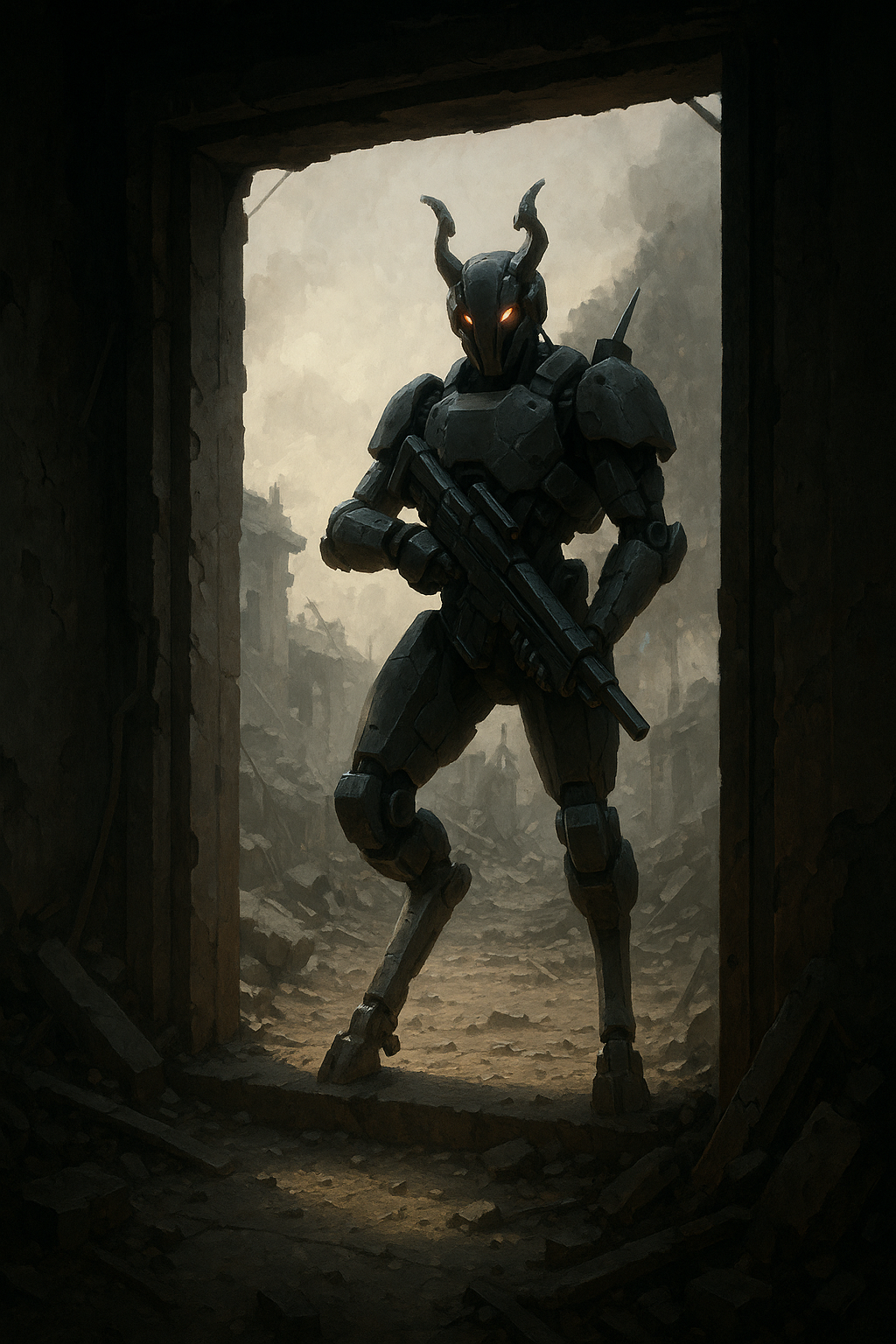 - Frame & Chassis: Forged from Carbexene, a diamondoid alloy more common in starship hulls than on infantry. Almost impervious to conventional arms.