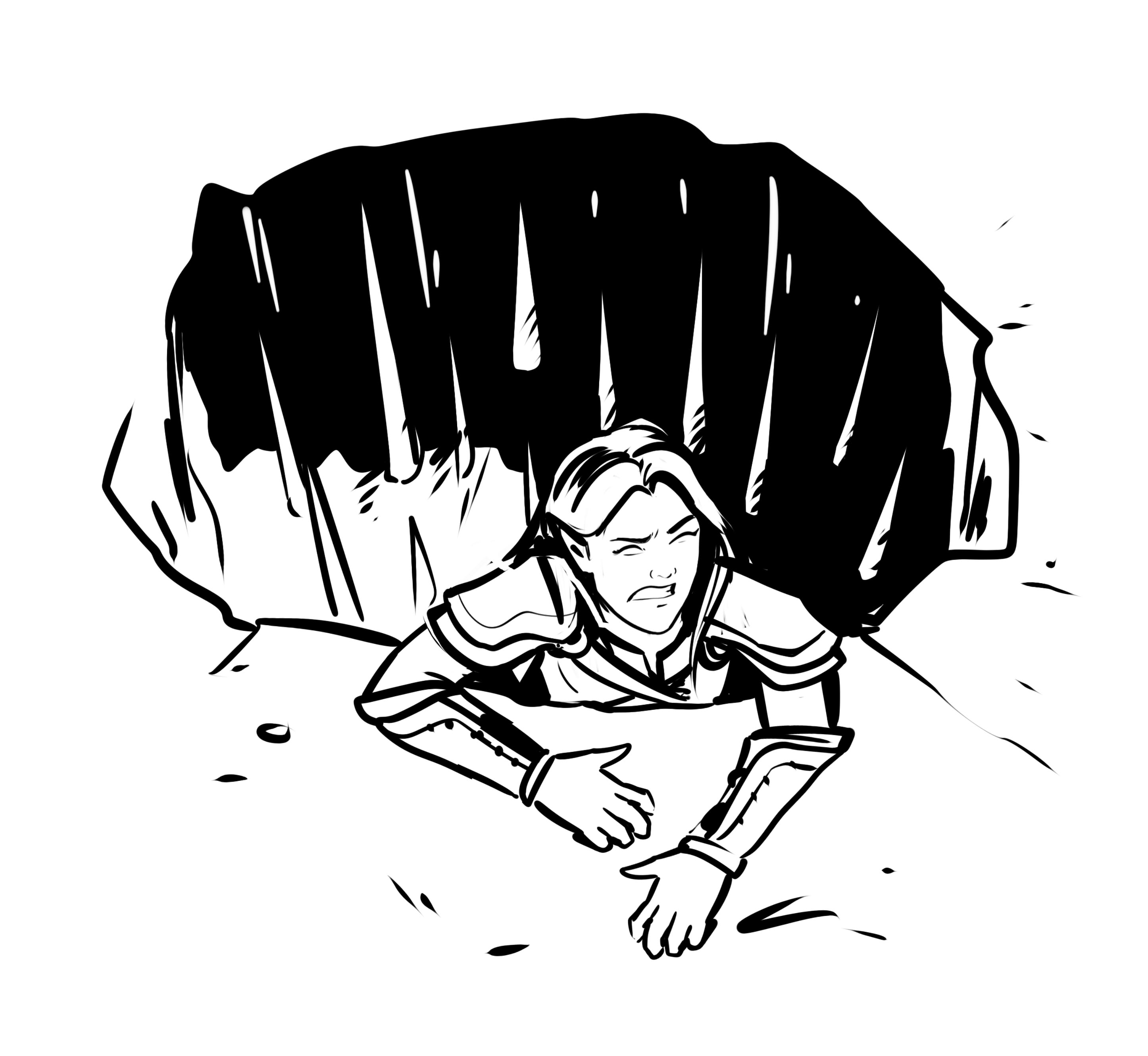 The ground opened up before her, creating a yawning chasm in the floor. Without hesitation, she leaped forward. Her chest impacted into the lip of the other side, and though her armour caught some of the blow, it winded her. As she pulled herself to the ground, she looked down. Rows and rows of spiked teeth. This was no pitfall trap.