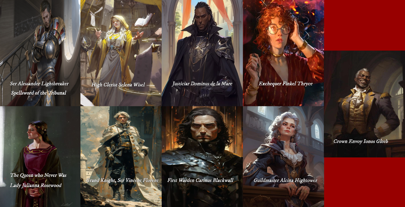Lord Dominus is an unyielding man of the law and is in charge of all matters concerning it that the Empress doesn't directly engage with. Dominus has a particular distaste for lawbreakers and is always waiting (sometimes impatiently) to pass legislation to more severely punish those who openly flout the Empire's laws. Notably, Dominus bears a deep grudge against any and all forms of organized religion, and makes his stance on it's integration into the Empire very clear, leading to heated arguments with High Clerist Selena Wisel.