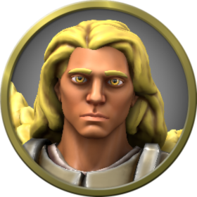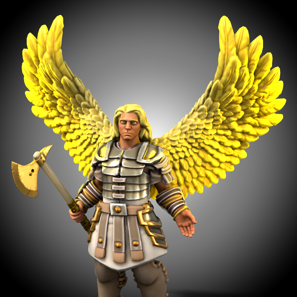 Yumos is a god of righteous fury, battle, and the Sun. He flies across the sky in an enormous warship called the Breaking Dawn, accompanied by celestial warriors, and protects Nerilia and its solar system against powerful evils from beyond. He has two divine aspects, and is worshipped in both. One, a muscular, dark-skinned man wielding a golden axe, embodies his compassion, while the other, a huge boar with golden wings, embodies his pure rage at injustice. Both represent his prowess in battle.
