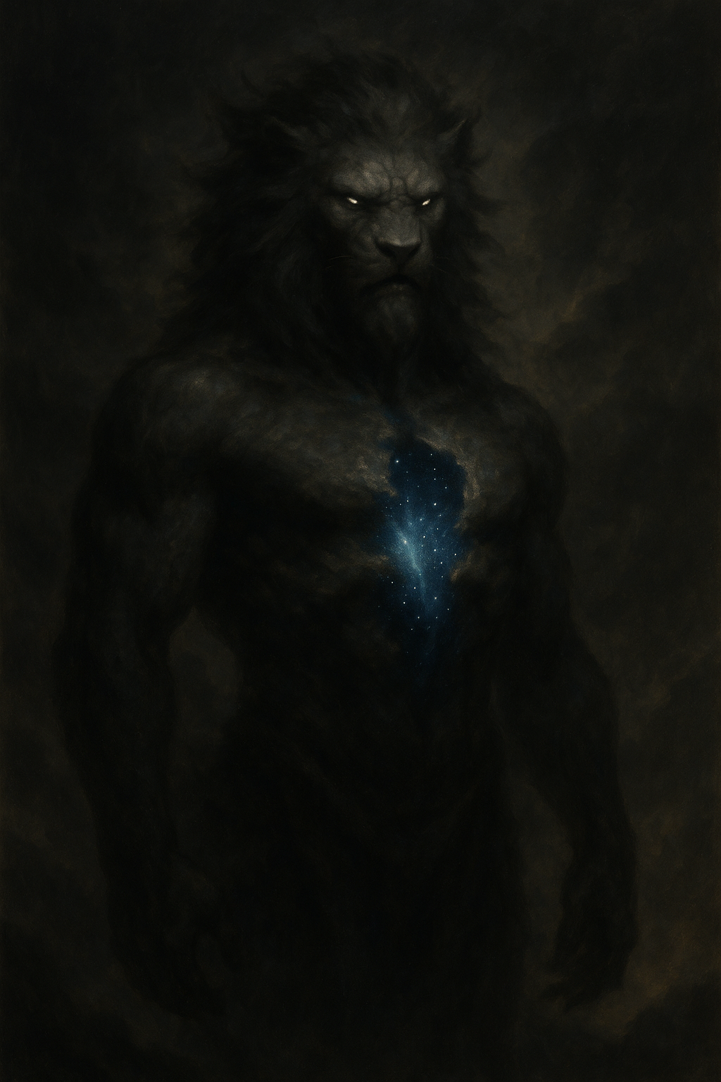 Sikius is depicted as a towering humanoid lion, his regal mane flowing like a cascade of golden light. His eyes, glowing with the brilliance of creation, reflect the boundless energy and wisdom that drive his creative power. His form combines the strength of a lion with the grace of a celestial being, symbolizing both his power and his role as a guardian.