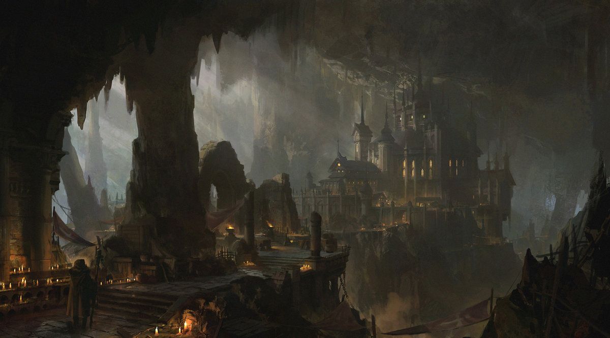 Far north, at the scree sloped base of the Ironil Mountains, is the beating heart of the Iron Banks Empire - Bastion. It was settled centuries ago by King Khadan Bastion the First, the same emperor who rules now. He settled it in the gargantuan, sprawling, subterranean ruins of some civilization that shall never be remembered. Amidst stalagmites and toppled plinths a city began forming. An opulent fortress sits at the heart and around it artisans and merchants flocked.