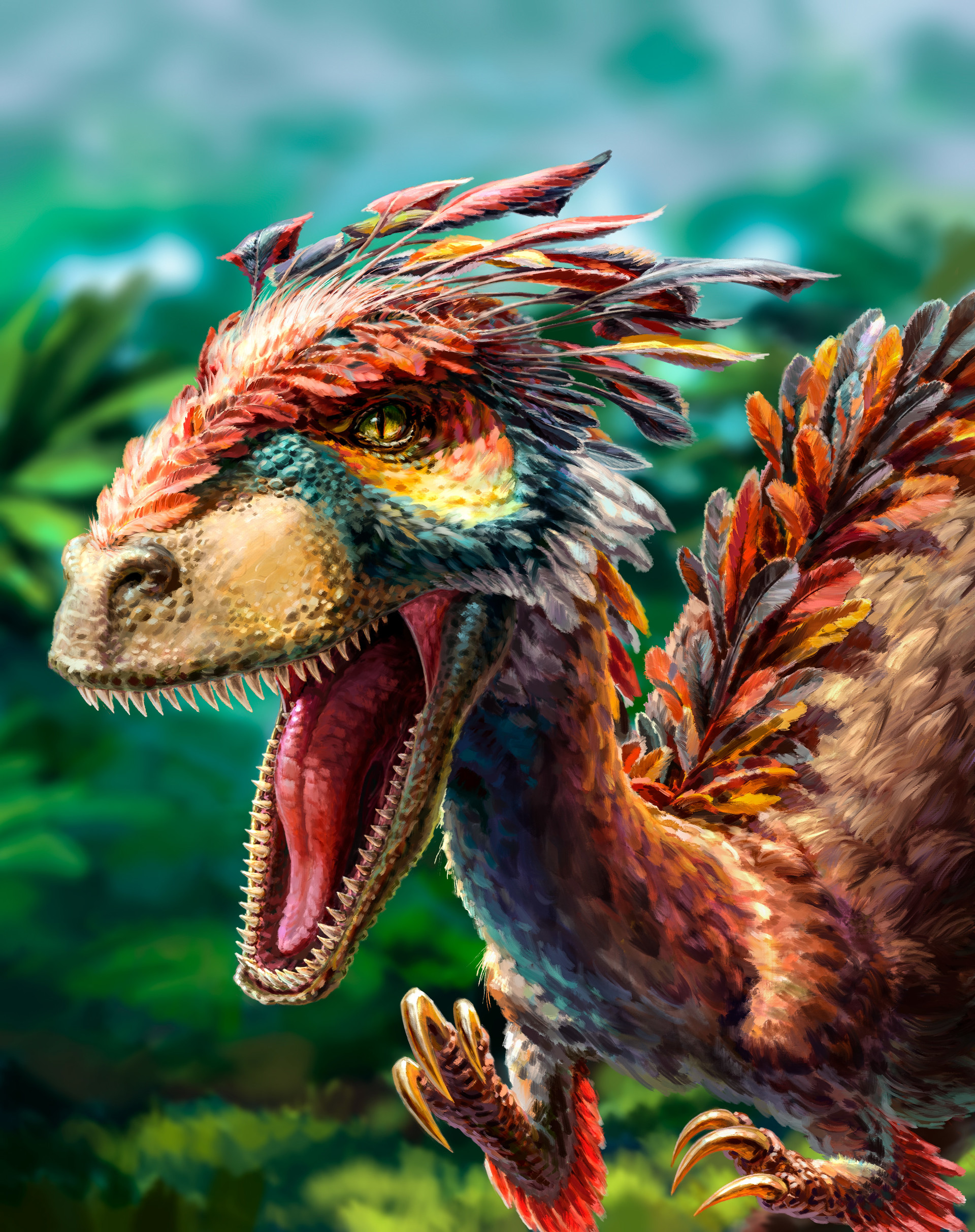 Dinosaurs vary quite widely in their size, though most are at least as large as an adult human, and most have a full or partial covering of feathers.
