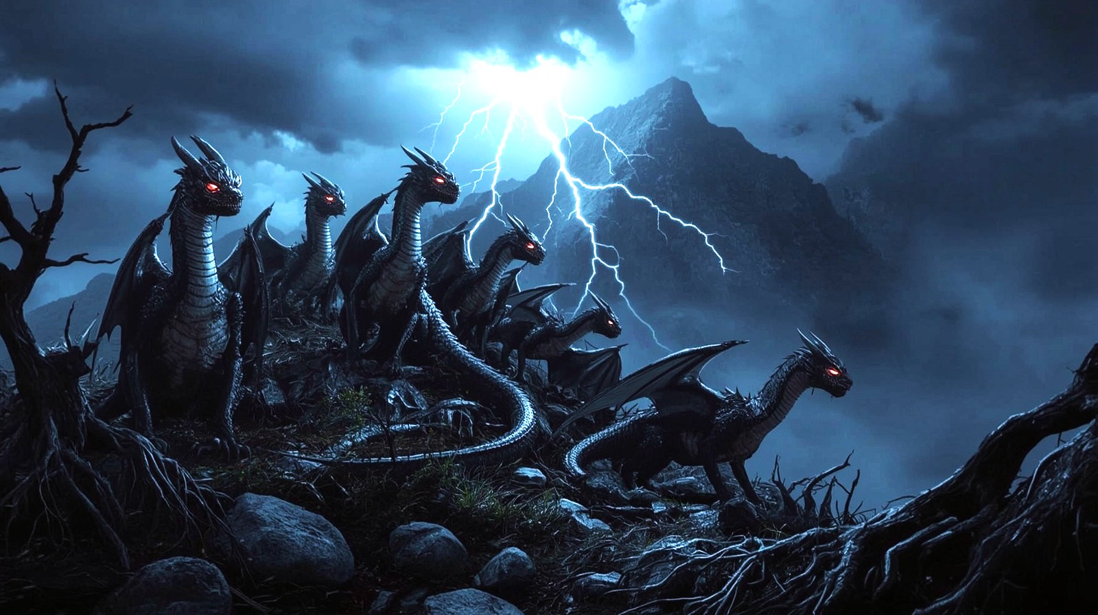 In the image at the head of the article we see a brood of black dragons preparing for the signal that will begin the test of the brood.