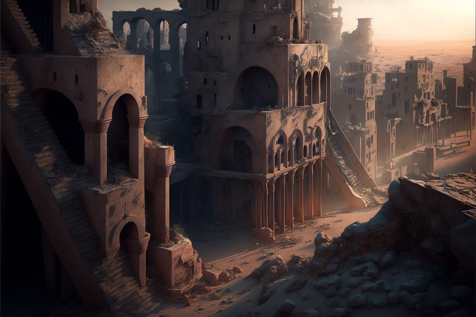 The Haltorath district of Blyperrin was the location where agricultural products were traded and where grain from the rich farmlands to the east of the city was stored and processed. This district was badly hit by the effects of the listlessness plague in the later 27th century and in this image we see how much of it fell into ruin at that time.