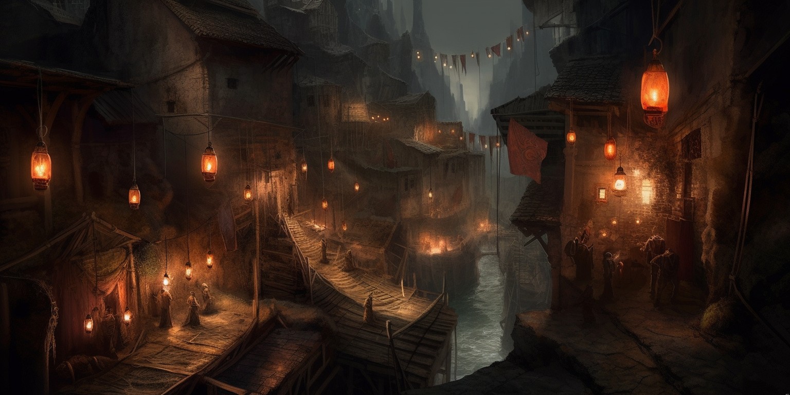 The Carafon Deeps are the lowest permanently inhabited level in the city. Compared with the warrens above, it is relatively sparsely populated. There are warehouses down here which act as staging areas for tools and minerals that pass in and out of the mines in the far dark below. Water that drains to this level, having missed the outflow north via the Carafon Stream, is destined to travel under the mountains via old fault lines that lead to the western watershed of the River Whisper. Here can be found the Lake of Night's Home, an infamously deep body of silent and dark water. It is situated beyond Last Lock Gate and Rose Quay marks the boundary of the city. On the far side of the Lake are abandoned mineworkings that may lead to the surface. The Carafon Deeps are largely given over to speld cultivation in some of the many natural caves, work supervised by the the Church. In the Gykula district of the Carafon Deeps, there are some dormitories which belong to the wealthy aristocrats who organise mining teams. These allow miners to sleep closer to the far dark where they work. The Gykula district also has some of the poorest dwellings in the entire city, with a service industry based on catering to the miners. It is notorious as a hideout for criminals and fugitives from justice.The Far Dark [Level 9]