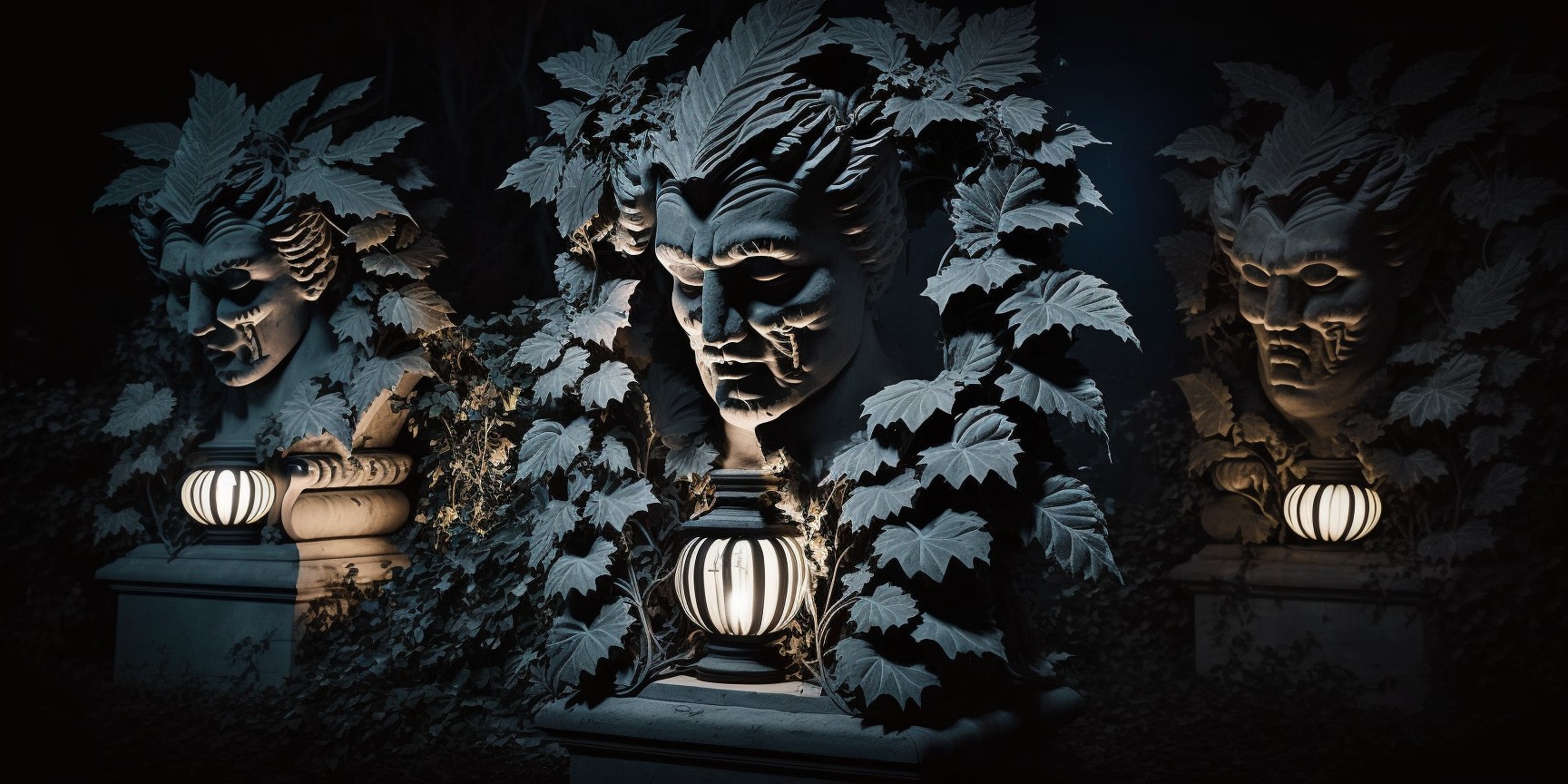 The dark flora of Carafon consists of a number of species of trees and plants which are unique to the cavern city. They are, in actual fact, the results of magical experiments conducted hundreds of years ago. The sage Manuthax, fleeing from a death sentence issued by the High Elders of Euth, was offered refuge in Carafon by the Tyrant Belkuno, along with a small retinue of followers, called the Circle of Manuthax. In return for the hospitality the city extended, the Circle of Manuthax, began a project that would last for more than twenty years, with the goal of creating species of plants that could grow underground without natural light. These plants are now known as the dark flora of Carafon. At the head of the article we see the Black Garden on the Lower Markets level of Carafon, where Manuthax and two members of his Circle are imortalised in statuary, amidst the carefully managed botanical descendants of their cultivars.