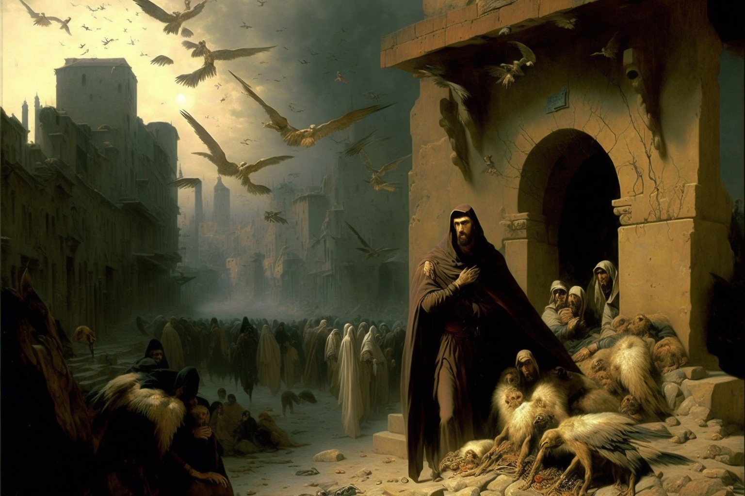 The Eyeling Plague was carried by many species of birds. Infected birds would often flock together in unnatural ways, wheeling round the sky and uttering chilling calls of distress, sometimes travelling for miles before they dropped dead. Poultry was susceptable and provided a common mechanism for cross species infection into humans.