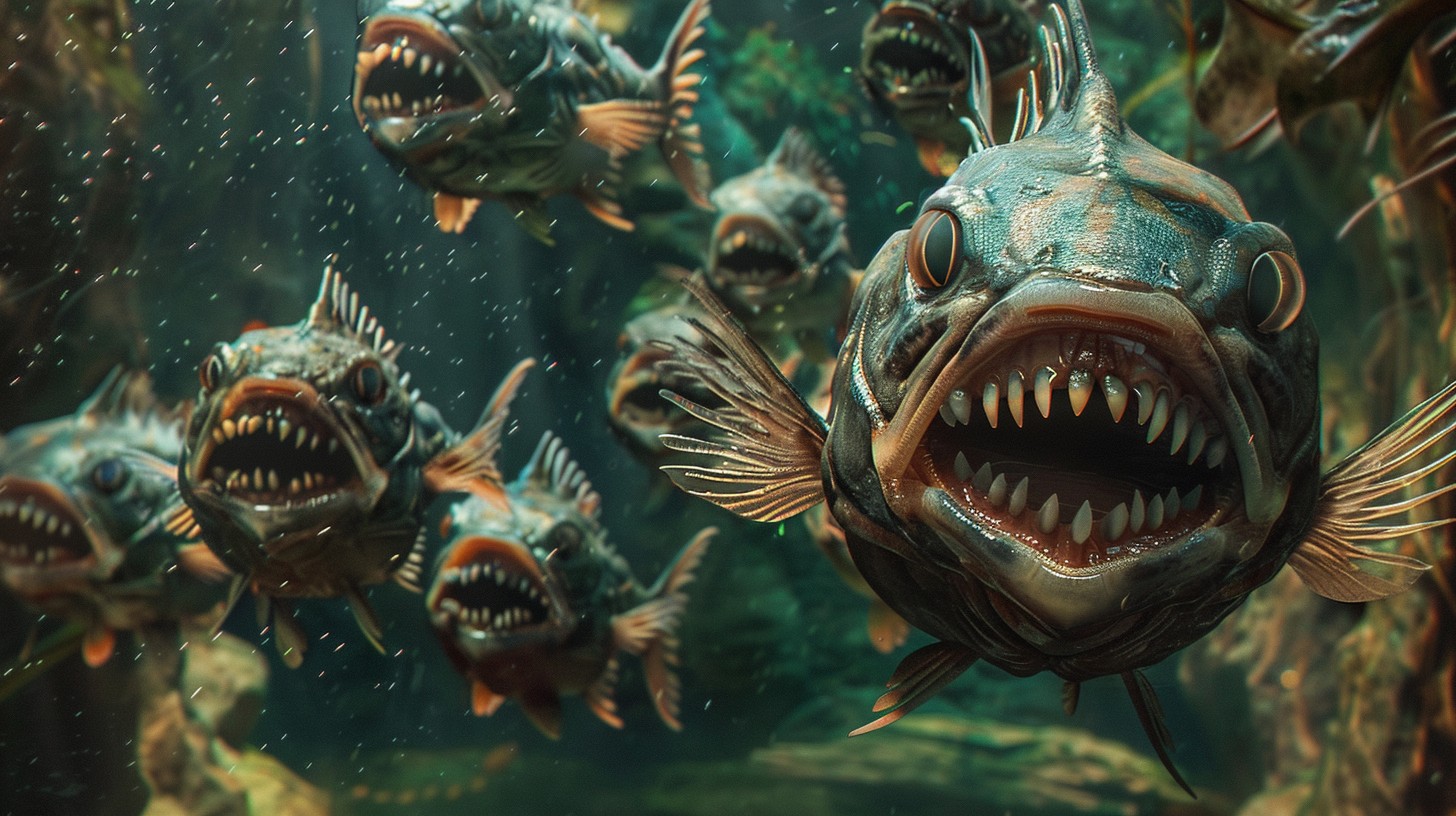 Punjuki. They hunt in large schools and present a serious threat to virtually any creature which finds itself swimming in the same area when they are active.