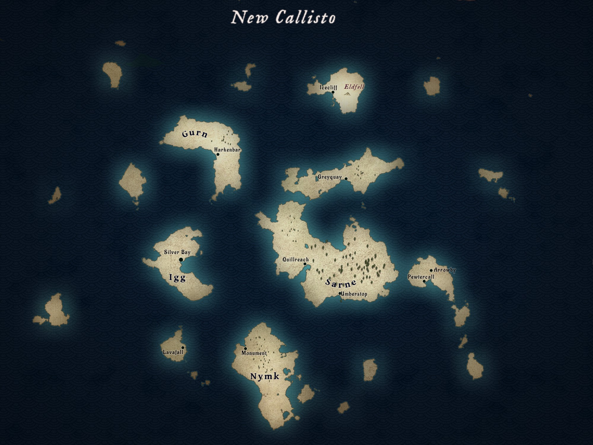 New Callisto is dotted with a number of large and small islands which were settled by humans in the distant past.