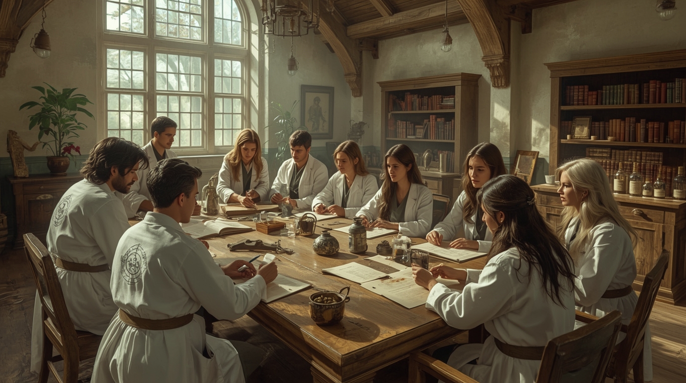 Triage healers are expected to advocate for their patients, maintaining a professional balanced overview of their health. They will deal with relatively routine and minor matters and they may delegate to specialists from one of the other colleges where appropriate. Triage healers must develop a thorough knowledge of herbal and magical medicines and the patterns of typical and unusual diseases and disorders.Surgery