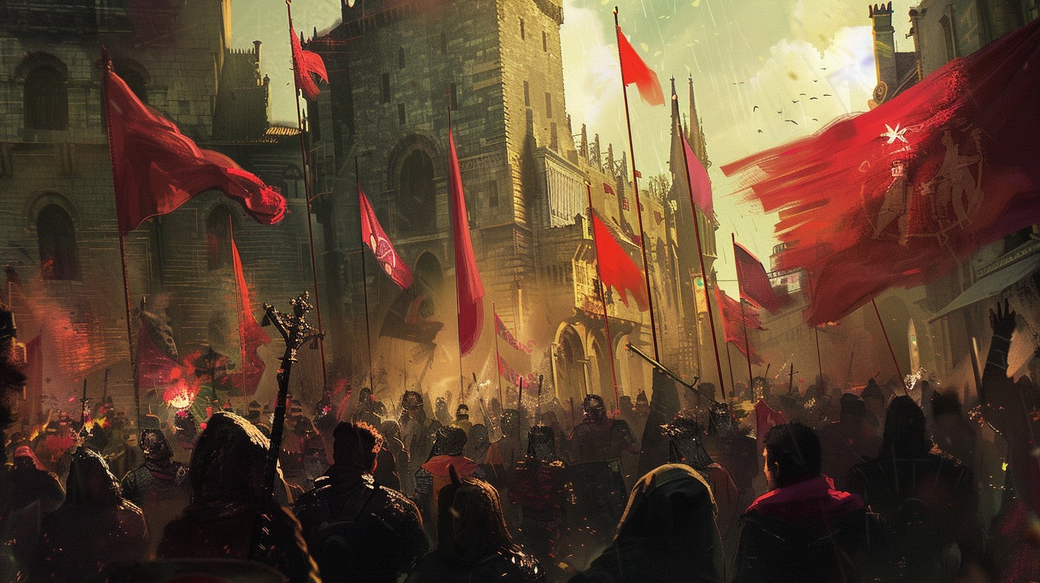 Although almost all the native inhabitants of Magicians' End, had welcomed the defeat of the Limit Protectorate and the ejection of Prince Rygarde and his allies from the realm, the popularity of the Loyalist Thaumatic Army Council which had achieved these things to great aclaim, declined rapidly when the way they excercised power was seen as arbitrary and dangerously similar to the hated autocratic mages from the Time of Terrors, albeit with somewhat less power and a more even handed authority. The Third Popular Ascendancy, took power on the crest of waves of protest all around the world, such as the rally at Zalgurim shown in the image at the head of this page.