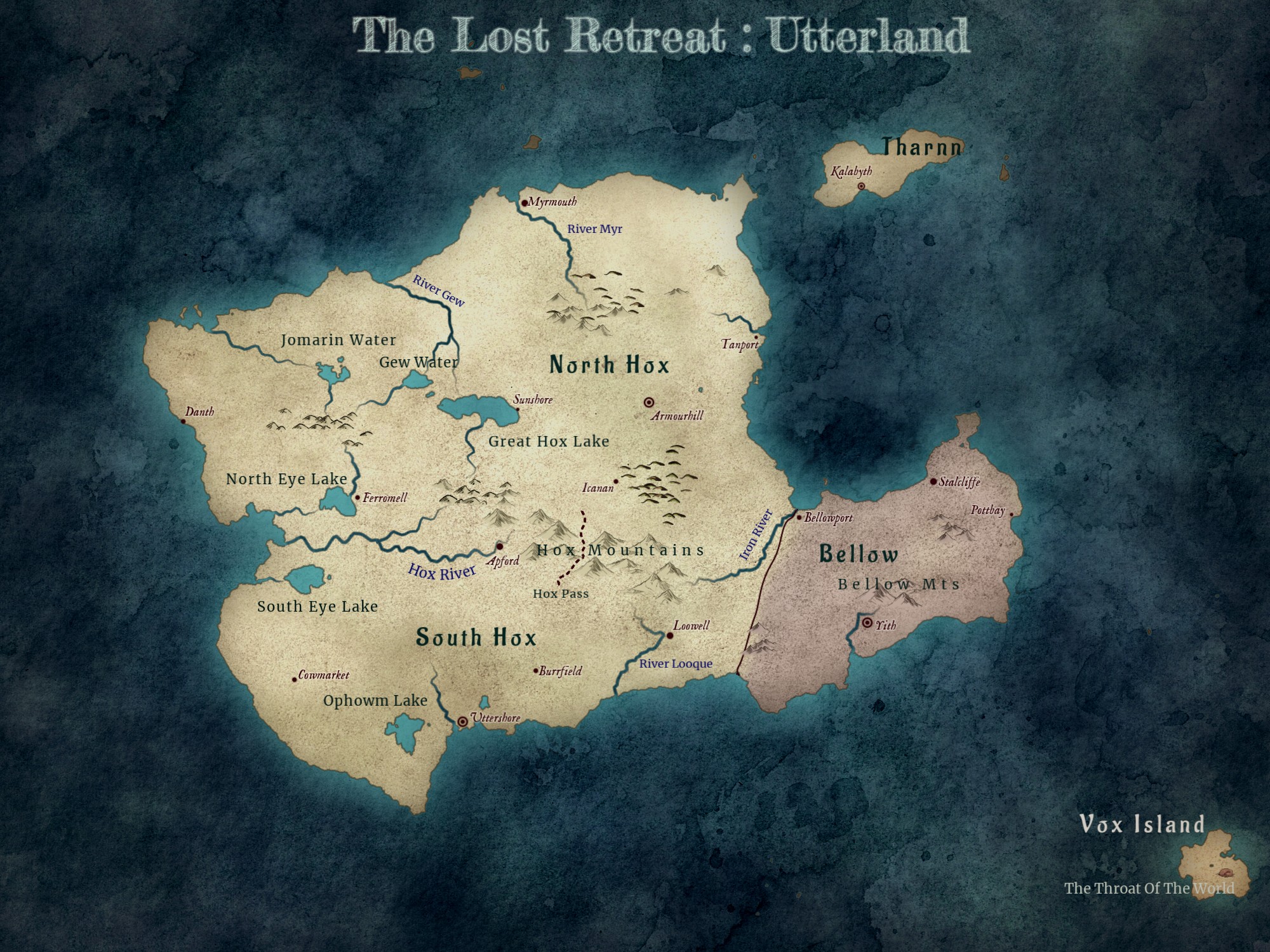 The deafeningly loud noise known as the Voice of the World, which emanates from a location called the Throat of the World on Vox Island off the south and eastern coast of the mainland, is of overwhelming importance to the region, profoundly affecting human societies and the evolution of local animals and their auditory capabilities.