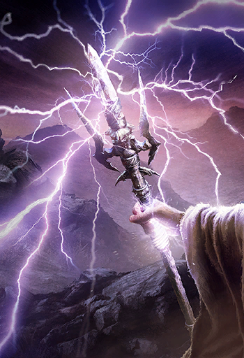 A beam of crackling, blue energy lances out toward a creature within range, forming a sustained arc of lightning between you and the target. Make a ranged spell attack against that creature. On a hit, the target takes 1d12 lightning damage, and on each of your turns for the duration, you can use your action to deal 1d12 lightning damage to the target automatically. The spell ends if you use your action to do anything else. The spell also ends if the target is ever outside the spell’s range or if it has total cover from you.