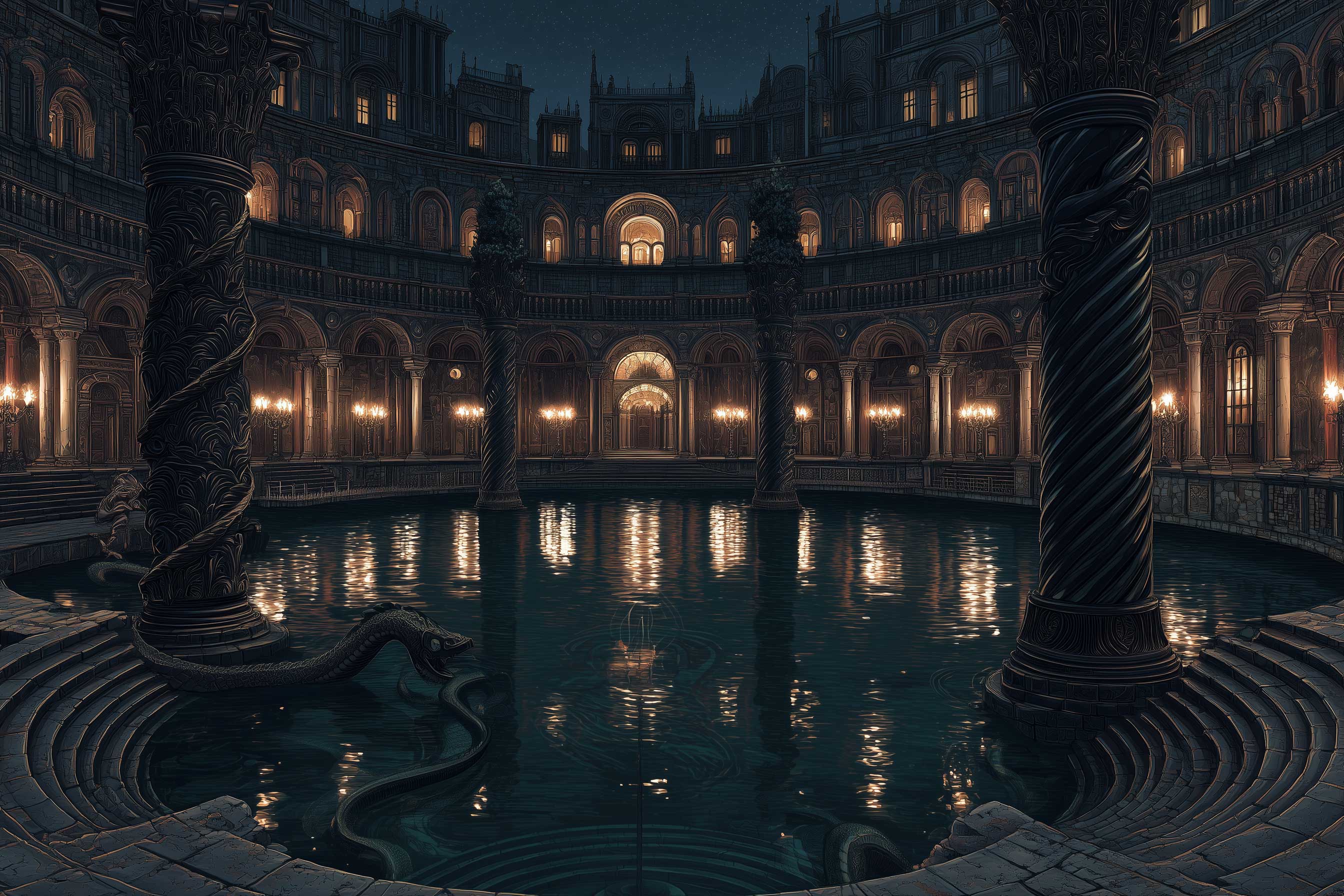 The origins of Ca’ Serpente are lost in conflicting legends. Some say the foundations were laid in Roman times, upon a buried Mithraic temple. Others claim it was raised overnight by an Assamite sorcerer bound in blood to a long-dead Prince. What is known is this: the palace existed long before Venice’s mortal nobility dreamed of Doges, and long before the current Prince carved her rule in bone and silence.