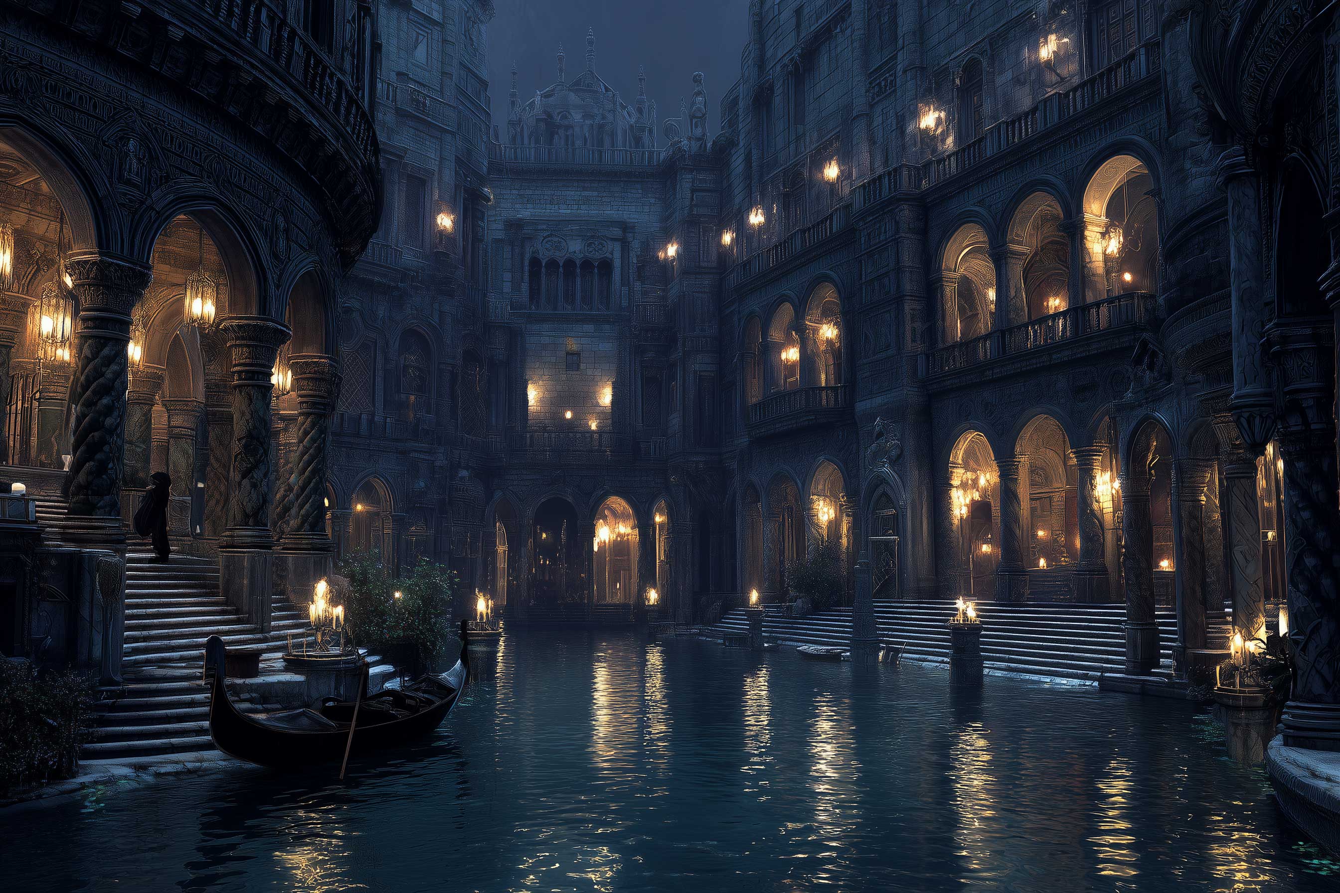 Rising like a wound from the dark waters of the Grand Canal, Ca’ Serpente is the secret heart of undead Venice—the seat of the Prince and her court. No living soul treads its marbled halls uninvited. Mortal maps do not mark it. Gondoliers avoid it, and whispers claim that those who look too long upon its black façade feel as though they are being watched… and judged.