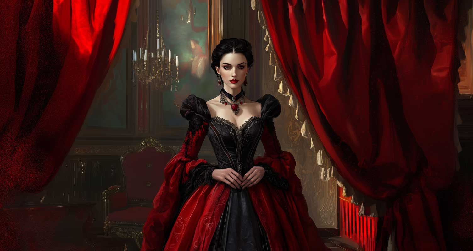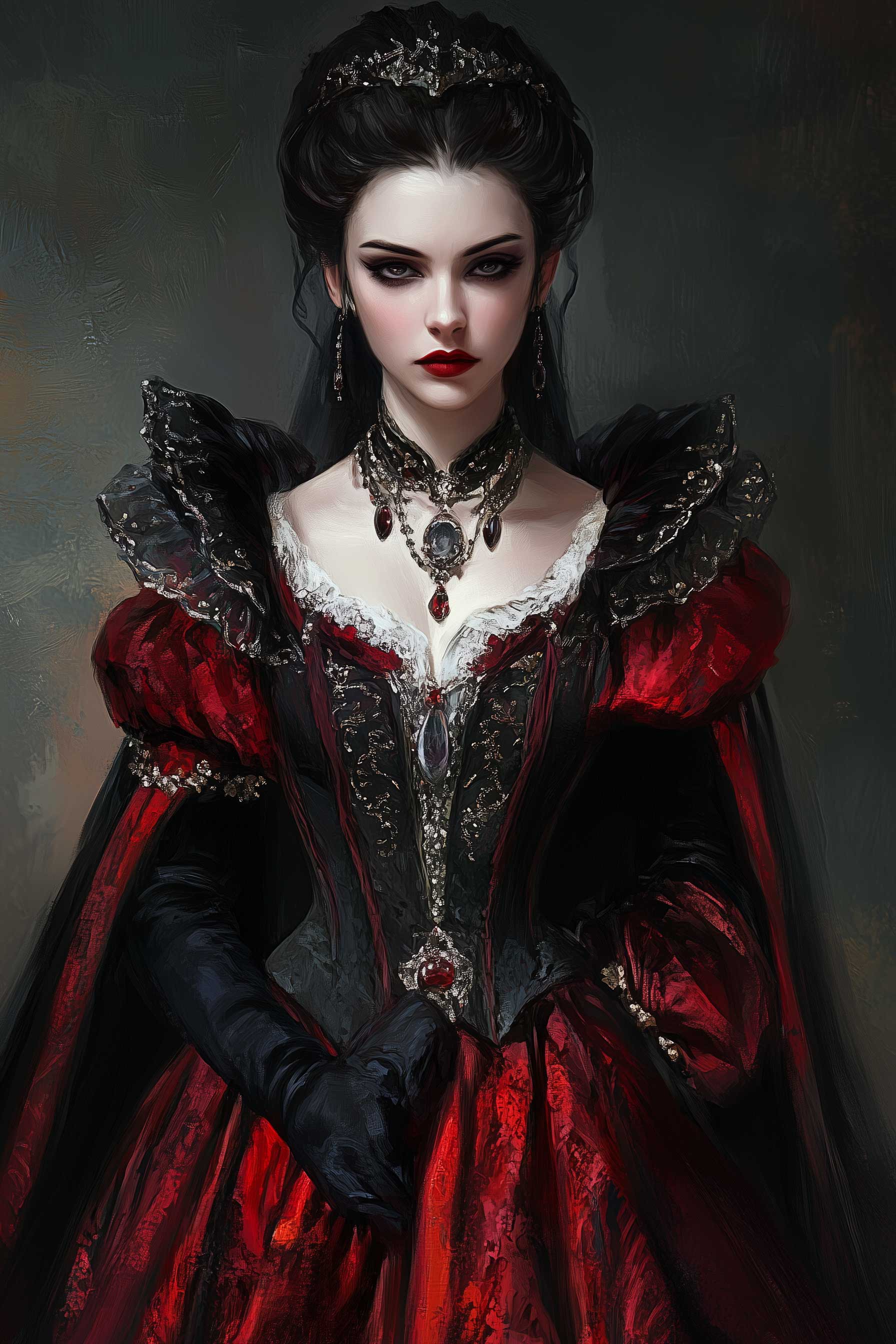 A vision in black lace and crimson silks, Elisabetta wears her mortality like a beloved memory. She speaks in poetry, kills with courtesy, and smiles with venom. She appears in public only during masked balls, veiled by living shadows and surrounded by courtiers who speak only when permitted. Her cruelty is subtle and refined—no one is executed without an audience, no one betrayed without elegance.