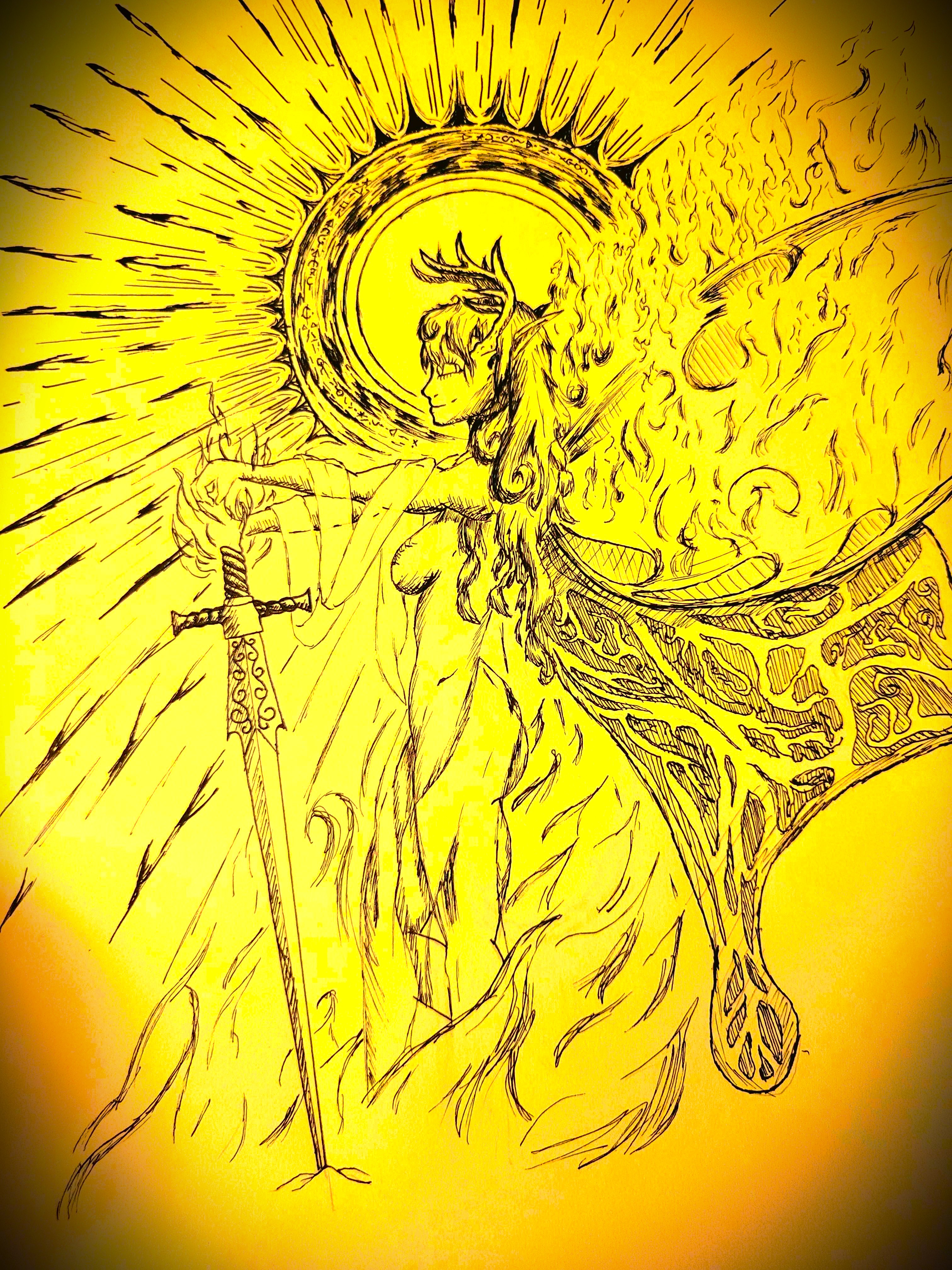 One of the Six Great Songs that exist in the shattered remains of Namix. They all sang a song of their own, a different being from one another. Though they all existed in that divine singularity, their voices all had a different lesson. Innumerable truths and possibilities coexisting while none stood to nonexistence. A dance in fire, a journey through heat and weight, a song of the heart of the stars. A myth that was born of truth, though the sands of time has blurred the fine lines locked in fractal ideas. A song born of heat and might, a song to speak to the dark, a song to whisper to the flame.