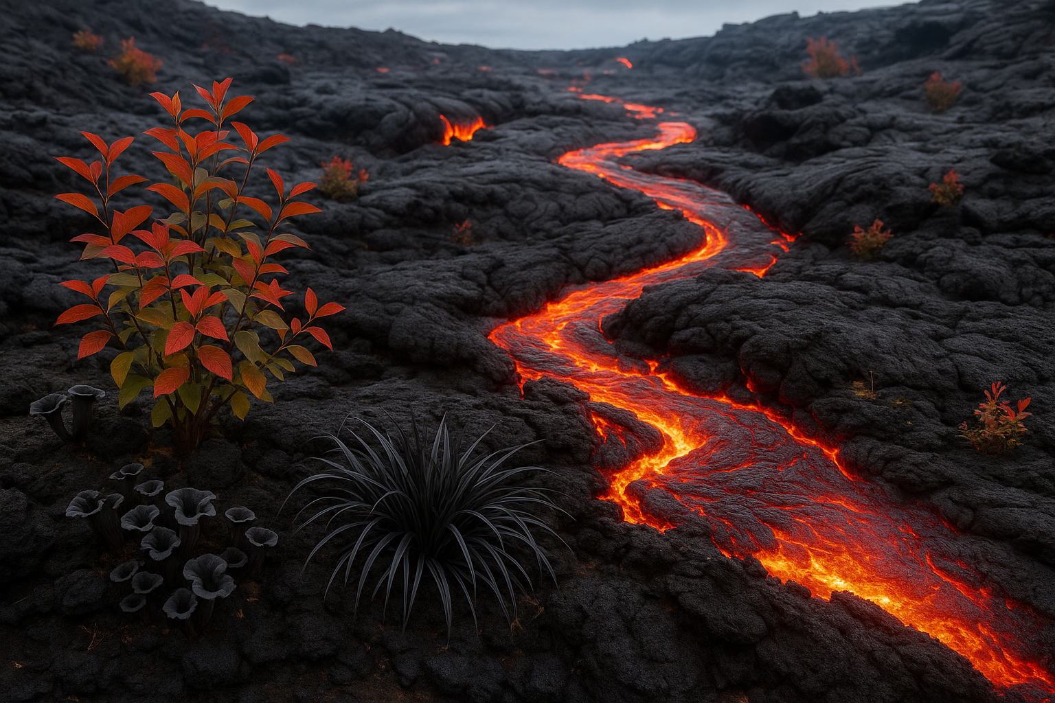 The center of Lawõ Di Fiʻa is dominated by volcanic landscapes, with active and dormant volcanic craters scattered across the island. These volcanoes are responsible for much of the island's rugged topography, including lava plains, crater lakes, and steep, blackened hillsides. The volcanic soil is rich in minerals, fostering lush plant life, but the heat from the underground magma creates pockets of steam vents and hot springs, adding an element of danger and unpredictability.