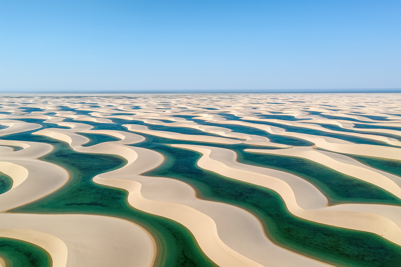 The island’s interior is dominated by an immense desert of soft, brilliant white sand dunes. These dunes rise and fall in undulating waves, stretching far into the horizon. The sand is so fine and pale it almost shimmers in the sunlight, creating an otherworldly, pristine landscape. Some dunes tower over 100 feet tall, while others are gentle hills, their shapes constantly shifting due to the winds.