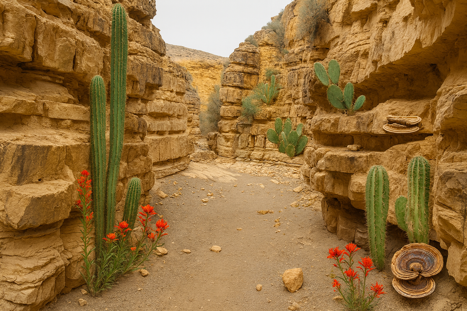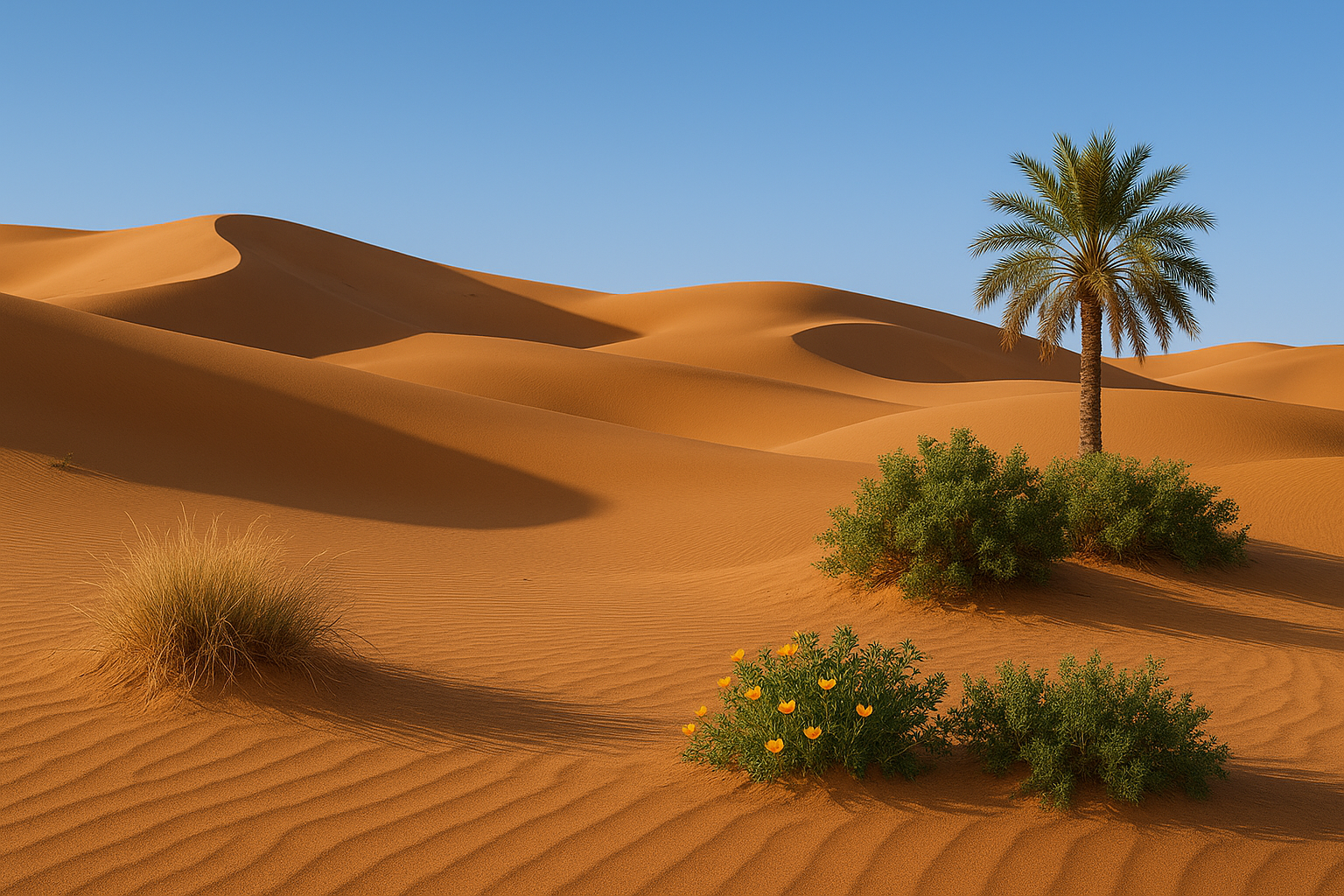 The Great Desert’s natural resources are shaped by its harsh, sun-baked environment, with water being the most vital and scarce commodity. Hidden underground springs and aquifers feed the desert’s oases, providing the life-giving water that sustains both flora and fauna. Date palms and cacti thrive in these oases, offering food, shelter, and medicinal plants that are crucial for survival. Date palms provide nourishing fruit and leaves for weaving, while cacti store vital water and have edible parts that help sustain travelers and wildlife. Desert flowers, though rare, bloom after rains, offering nutrients for pollinators and providing medicinal plants for the locals. Additionally, the underground Desert Truffle, a rare fungus growing near water sources, is highly prized as a nutritious food for both animals and people.