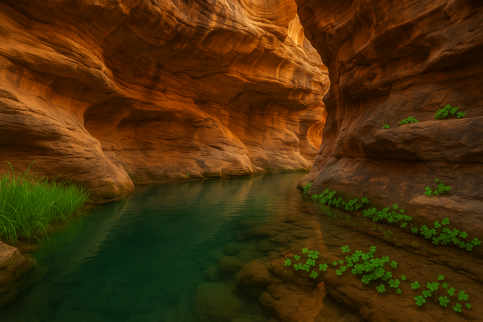 The Shimmering Oasis lies at the heart of the Luminous Expanse, a rare and life-giving anomaly in the vast desert. This oasis consists of a crystal-clear lagoon surrounded by towering date palms, with waterfalls cascading down the cliffs that cradle the lagoon’s edge. The surrounding hills, sculpted by centuries of wind and water erosion, form a natural bowl that traps the cool, refreshing waters of underground aquifers. The area is dotted with caves and grottos, some of which house bioluminescent underground rivers, creating an ethereal, magical quality. This oasis serves as both a crucial resource and a place of respite, anchoring life in the middle of the desert’s unforgiving stretch.