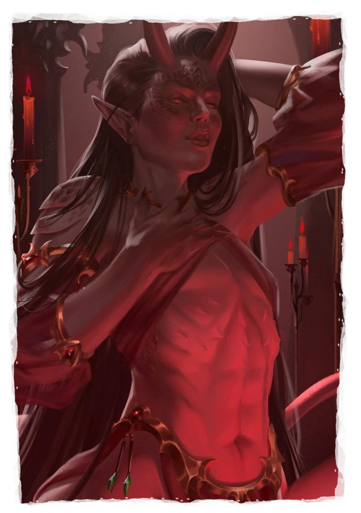 Asmodia’s domain of lust attracts fiends whose forms and powers embody temptation, excess, and the corruption of desire. Though many Infernals can be drawn into their service, a few kinds are especially associated with their worship. These beings serve as enforcers, seducers, and living icons of Asmodia’s will.- Succubi and Incubi. Above all others, succubi and incubi are seen as Asmodia’s chosen emissaries. They embody the twisted ecstasy of lust without restraint, wielding seduction as a weapon to enslave the soul. Within the Crimson Chorus, they act as high priests and prophets, their every caress and whispered promise regarded as divine scripture.