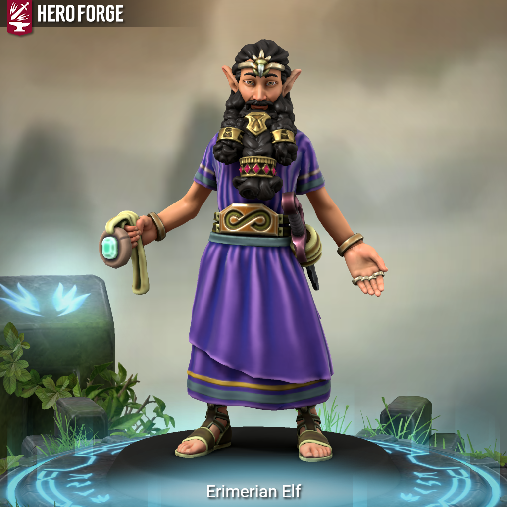 Erimerian Elves: The Erimerian primarily inhabit the region of Musmer in the cities of Eridu, Urk, and Legush. Their culture is deeply rooted in the ancient traditions and magical practices that date back to the times Gol-Beki and the times of Gil-Ga-Mesh. The Erimerian Elves are known for their advanced magical abilities, scholarly pursuits, and spiritual connections to their ancestors and the Old Gods of Anki. Eridu, as the cultural and religious heart of their civilization, is also home to the influential Council of Eridu, which comprises powerful wizards and sorcerers. The Erimerian Elves tend to consider themselves as first amongst equals compared to the other Elves and superior to that of the other races.