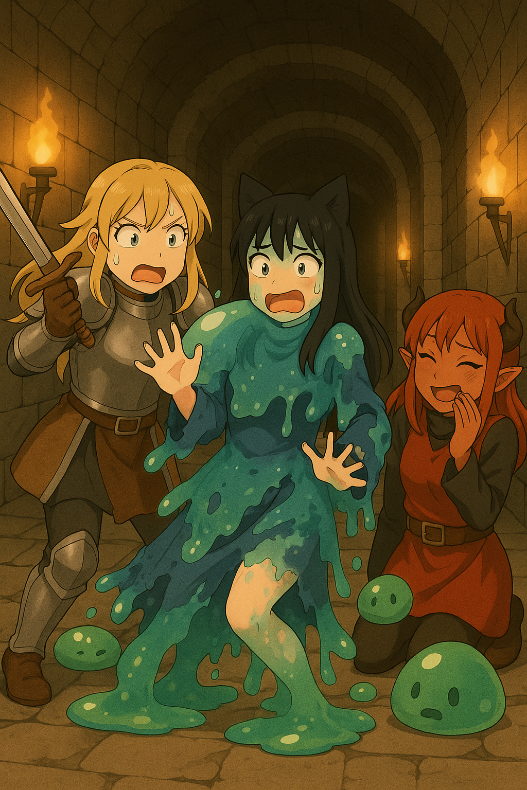 Some reorganise entire communities, even Realms, with alarming competence. Others remain faithful mascots, happy to burble at your side and eat your leftovers. A few are studied by scholars — until the inevitable laboratory fire when the slime grows too curious. And in less reputable tales, they are remembered for what they did to laundry, armour, or travellers’ composure.