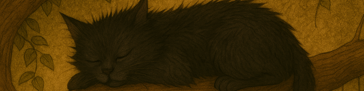 Fizz dotes on him shamelessly, feeding him constantly, fussing over him, and brushing his sleek fur as though he were royalty. Smudge accepts the attention with smug entitlement, never swelling beyond his perfect, unsettling silhouette. Dillon, the owl, sharpens whenever Smudge rumbles, his blank stare snapping into sudden focus. The two seem to act in concert, one marking what is false, the other staring into what should not be seen. Whiskers the drake once tried to eat him, mistaking him for a rat. Smudge survived, insulted, and the feud between them remains unresolved. The Maids tolerate him with irritation, for he spoils bluffs as easily as he exposes cheats. Seraphis alone unsettles him. His hackles rise when she enters the Garden, and he vanishes before her gaze can fall on him. The reason is never spoken, and perhaps should not be.