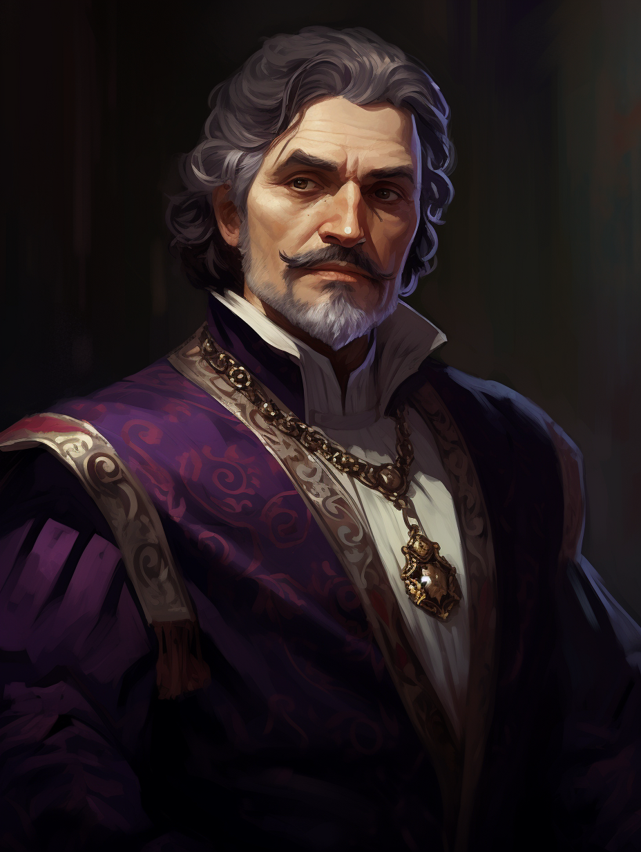 - Appearance: Silver-haired, with sharp violet eyes that betray sleepless nights. His garments are regal but frayed—luxury worn thin by duty.