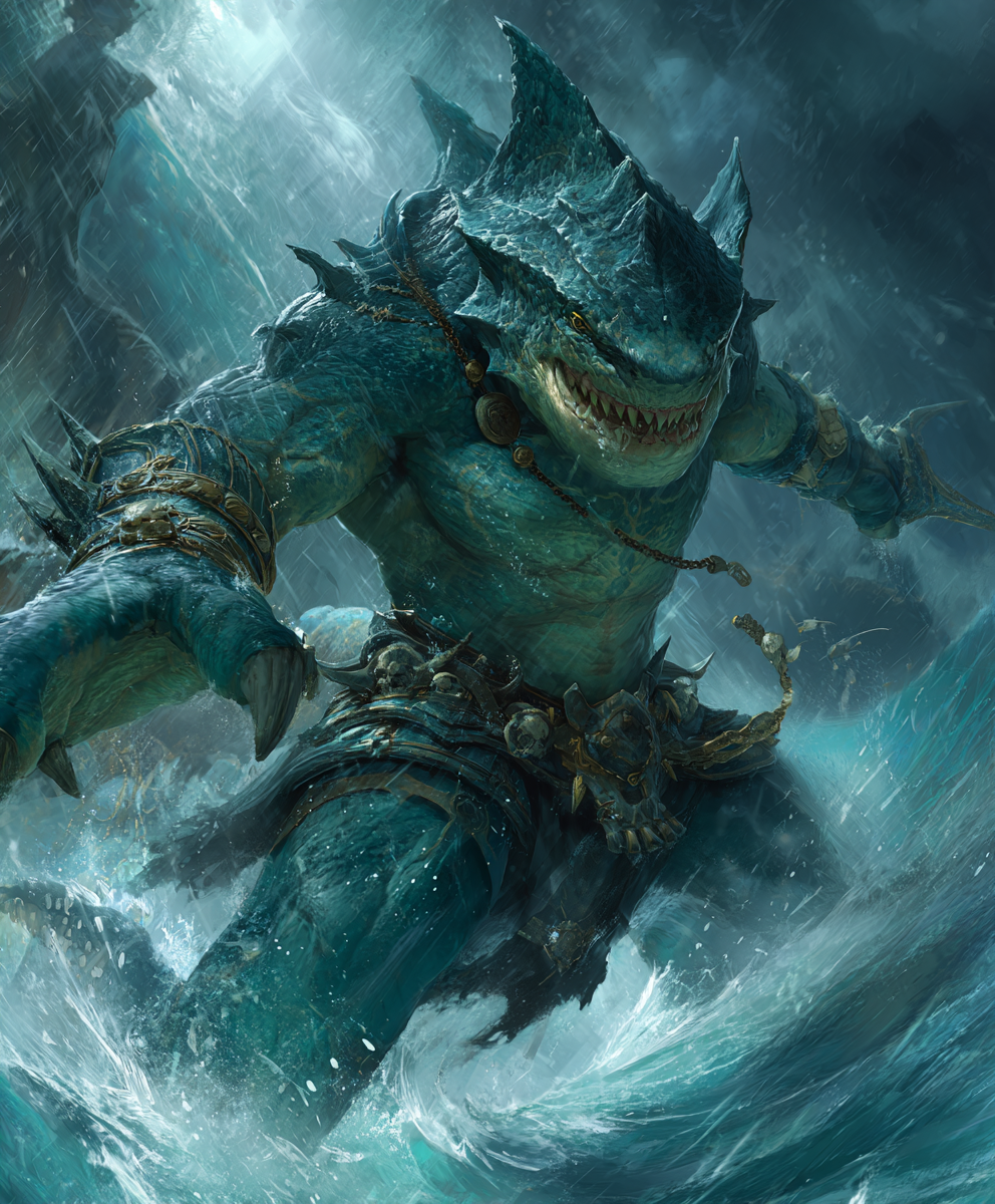 Sharks often accompany them, answering their eerie whistles and guttural chants. Sailors call them shark-brothers, and many swear the sharks fight with a mind not their own.