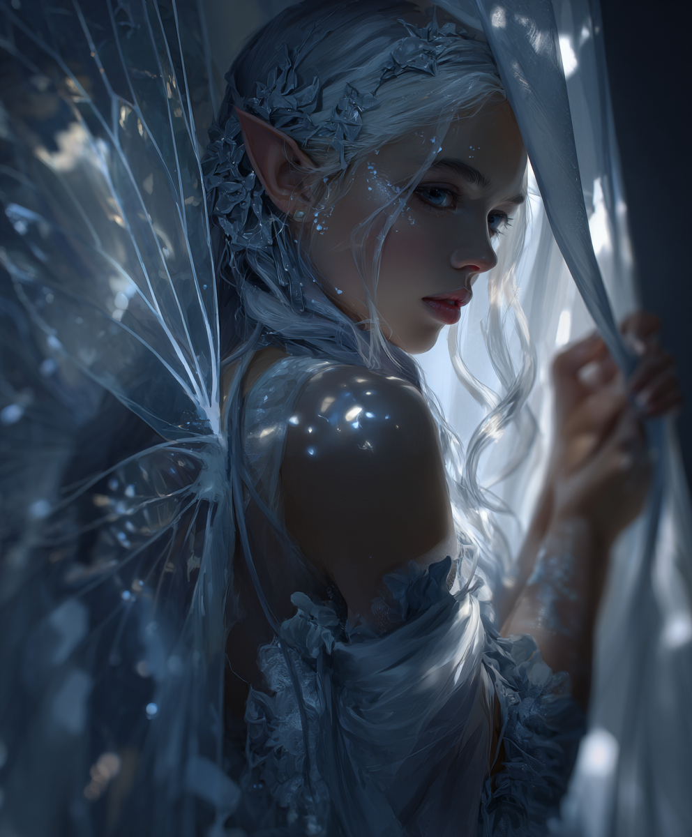 Her shadowed wings and moonlit hair mark her as a survivor of that sundered Court, a living reminder that the Fey are not simply mischievous spirits — they are powers, courts, and destinies bound to mortal choices.