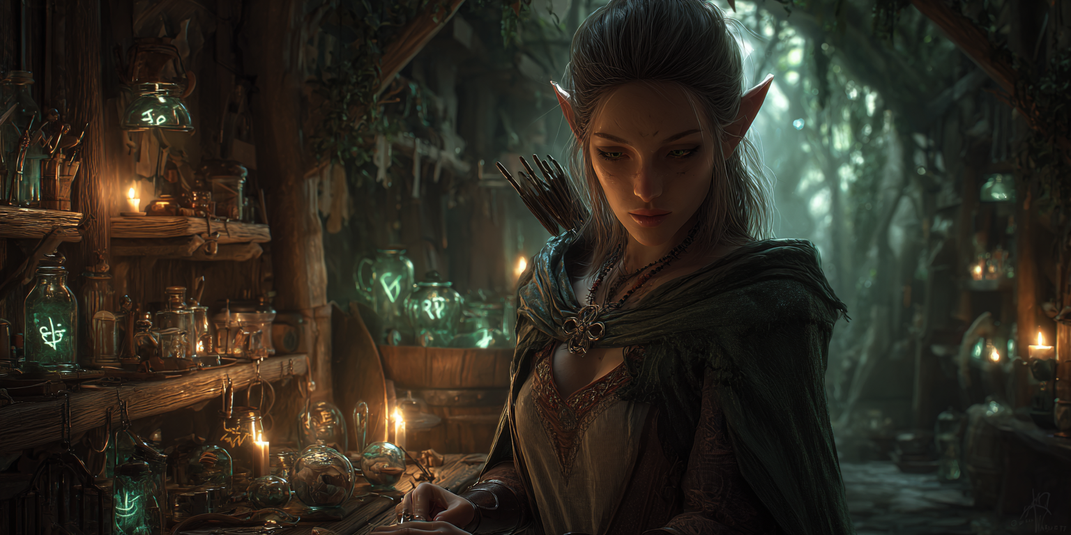 Proprietor: Calaethar Willowshade (Moon Elf — recovering, furious, and still better at this than anyone alive)