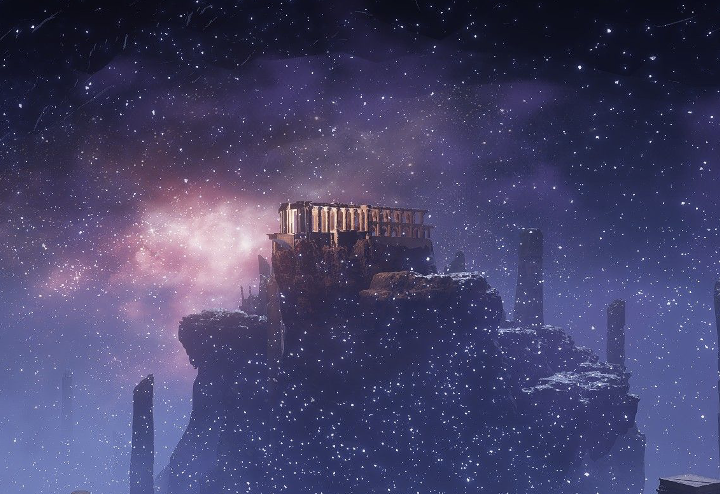 Once a semi-nomadic settlement, the locals formally put down roots millenia ago, enamored by their cavern of eternal night. When the winter storms rage, those who seek guidance need only look at the starry sky on the cavern ceiling; those who are willing to accept guidance will find their path waiting for them, illuminated by the stars. In the settlement's early years, paths were carved in the cavern walls to permit those seeking guidance to view the cavern sky from all angles. Now, various look-outs, grottos, and elevated perchas have been constructed to provide a view of the cavern sky unobstructed by the burgeoning town below.