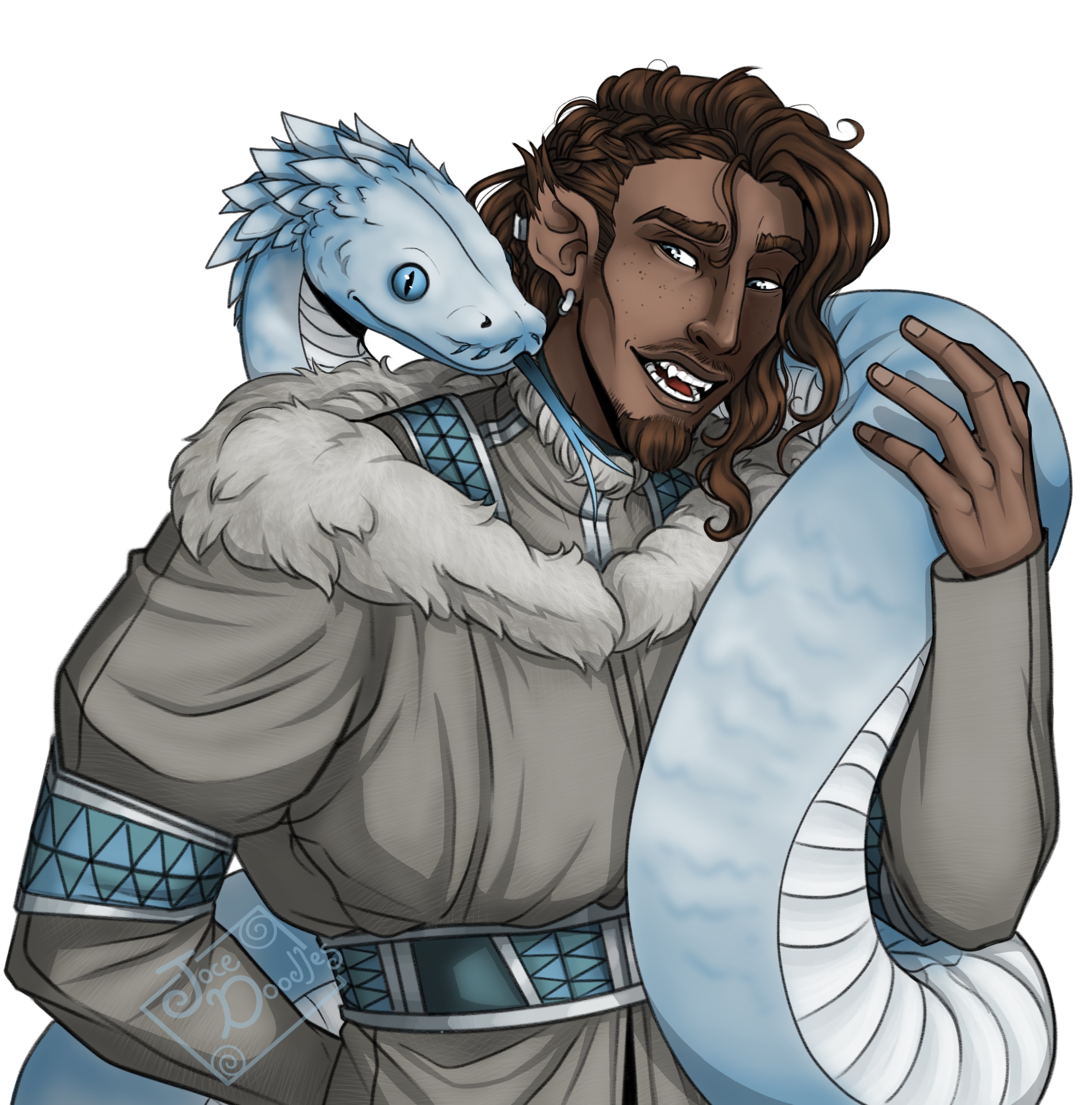 Misc. Tulimaq’s animal companion is a middle aged (~20) Stone Eater Snake that he received on his 9th birthday. The snake – affectionately named Nyoodel (“Noodle”) – is approximately 15 feet long and a bit chunky in the middle. As he has consumed Moonstones, he is weirdly warm to the touch.