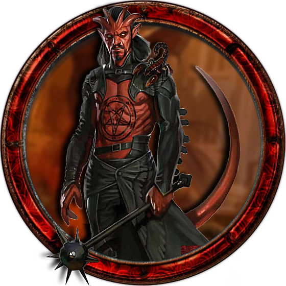Faxon - A tiefling cultist of Baphomet and one of the leaders of their forces in Kenabres. He exchanged few words with the party before they fatally clashed at the Tower of Estrod - a conflict that resulted in his death.