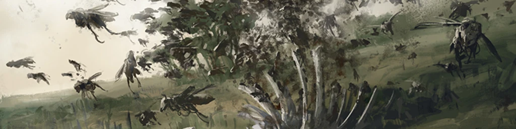 The time had come to put the plan into motion; Regill and his Hellknights rode out into the field with Sosiel alongside them, and the vescavor swarm took the bait. Meanwhile, the Knight-Commanders and Woljif entered the canyon and found an entrance to the vescavor queen's lair, where they began searching for their prey. The party encountered a few vescavor swarms until coming across the remains of the caravan that had been rumored to have gone missing in the area. The aravan consisted of mostly ruined barrels and bags and a destroyed wagon, but also contained a reinforced chest that the agitated vescavor swarm was sure to chew through eventually, ruining whatever was inside. The party stopped for a moment to try and unlock the chest as quickly as they could without losing too much time, having Woljif combine his lockpicking talents with Hilda and Satomi's magics to break through the heavily warded lock. Eventually Woljif broke through, revealing the chest's contents; an ancient manual of bodily health written in High Boros, making it a very old and valuable relic regardless of its magic. With the manual tucked away, the party pressed forward farther into the caves, encountering another agitated pocket of the swarm led by a chasme and a deadly apocalypse locust. Enduring both the chasme's life-draining proboscis and the locust's balefire breath, the party emerged victorious and carved a way through to the largest cave chamber, where the vescavor queen laid in wait. The party did battle with the vescavor queen, who spewed clouds of her own spawn that she commanded telepathically to attack her foes or to protect her from harm. Combined with her blade-like claws, acidic bite, and her ability to spit highly corrosive bile, she was a deadly enemy that pushed the party to bring their full mythic might to bear. Eventually the beast was brought low, and the swarm began to dissipate into nothingness just as Anevia had suspected. The party stayed for a while to let Hilda harvest some of the queen's digestive acid for use in some kind of experiment, and then burned the queen's body to ensure that one of her spawn would not feast on her corpse and become a new vescavor queen. Satomi contacted Sosiel with sending to inform him of their triumph and to ascertain his survival. Thankfully, he and the Hellknights had survived, with Regill's unit taking some bracing, but ultimately manageable losses to the vescavor swarm. The Knight-Commanders and a traumatized Woljif returned to the camp victorious, and after being welcomed as heroes, the decided to get some much-needed rest before proceeding through the cleared Leper's Smile. Regill requested a moment of Hilda's time, referring to her as "Knight-Commander Grimm" - a name she did not expect to hear, as she had not once shared it with anyone since arriving in Mendev. As they spoke in private, Regill revealed that he had spent some time on the mainland while investigating a rogue order of Hellknights known as the Order of the Scepter, which he did for a time in the company of an adventuring guild known as the Fairhaven Frontier. It was there he met another Hilda Grimm - one created from her excised soul and copious amounts demon ichor. The paralictor explained that he had been recalled to the Order of the Godclaw's headquarters when news of the attack on Kenabres broke, and he was intrigued to have met yet another Hilda Grimm who was not only far away from the mainland, but was a leading figure in the historic Fifth Crusade. Regill made sure, however, to inform Hilda that he was watching her. Although he did believe that people were capable of defying the circumstances of their heritage - he held no prejudice for abyssal tieflings, for instance - he was also not blind to the fact that Hilda was suffused with abyssal energies, and such a situation warranted his sharp eye. Hilda did not object to this, affirming her mission to close the Worldwound as testament to her ability to resist the pull of her demonic half. Regill was satisfied with this, and let the Knight-Commander go in peace. Sosiel spoke the Elseth while the army was on the march some days later, asking the former cleric for advice on how to shepherd the faithful of Muir in his capacity as spiritual advisor for the crusade. He understood why Queen Galfrey, a chosen of the Muse herself, selected a devotee of another god to serve in such a capacity, but he still wished to understand his Muiran brethren to best keep their spirits up in the face of the grim realities of war. Elseth advised Sosiel to lean on motivating them to rise to the occasion, to meet the challenges of the crusade and to use their struggles as an opportunity to grow and become stronger. In the pursuit of triumph and victory, she reasoned, the crusaders would find hope and resolve. Satisfied, Sosiel thanked Elseth for her time. He mused for a time on the harsh realities the crusaders faced, but he remained confident that there was still beauty in the world that was worth suffering and fighting for - a sentiment fit for a servant of Shelyn such as he. As the army proceeded through the canyon, Drezen drew ever closer on the horizon…
