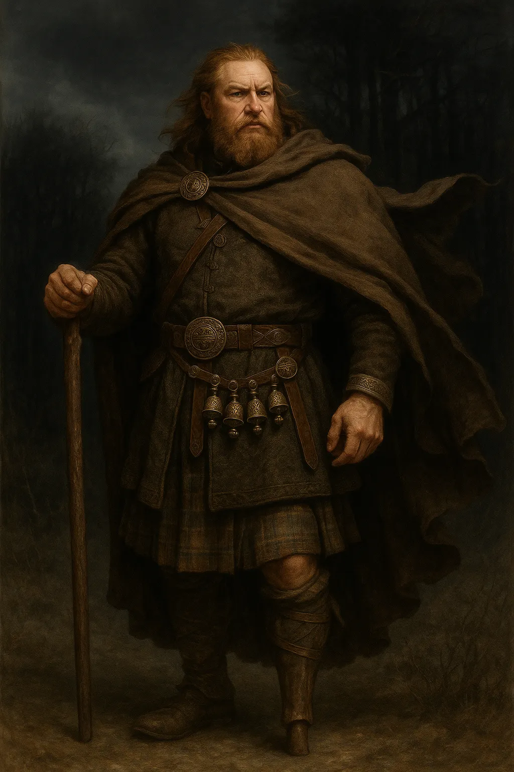 Like all the an Duffs, Callum is a large man, standing over six feet tall, with broad shoulders and a powerful build. Even maimed, he is imposing, capable of swift and graceful movement despite having only one leg and his considerable frame. He uses both a wooden leg and a staff to walk, and many who meet him notice only a slight limp, never guessing that his left leg is gone. He has been the most dynamic leader the Foresters have had in many years, expanding their ranks and improving their effectiveness to counter the growing threat from the dark wood. He has managed to slow its advance, though he has not been able to halt it.