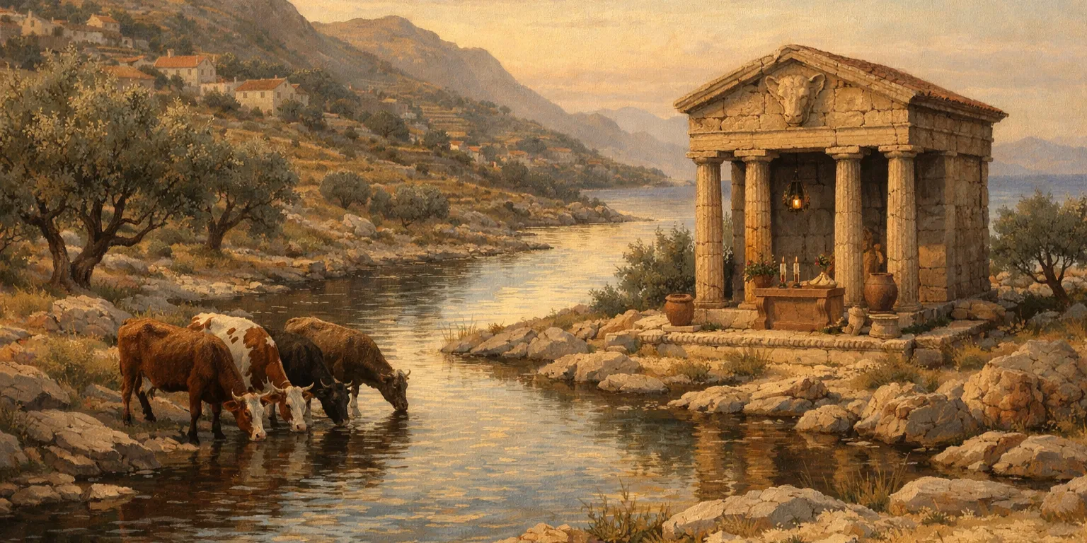 Thus a tradition was born. At times, the magic failed, but belief endured. Perhaps the water had been too old, too diluted, or the offering to Geranos insufficient. Over the decades, the belief spread across Íssa and then outward to the other islands of the archipelago. It became common knowledge that the waters of the Potamós Skála could prevent or cure disease in cattle, and pilgrimages to the river became frequent.