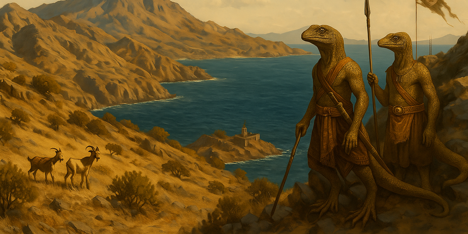 Kambi is a small and lightly inhabited island southeast of the larger island of Bara. Until a few years ago, it belonged to the Bara Karajan and was used only for the hunting of wild goats - the most common creatures on the island, outnumbering the Phaṇin inhabitants by a hundred to one or more. But when the Tagápulo Empire formed an alliance with the Bara Karajan against their enemies, the Kingdom of Tiwu, they purchased the island to use as a military installation. Since then, it has become the center of the Empire's operations within the Mekonggan Archipelago.