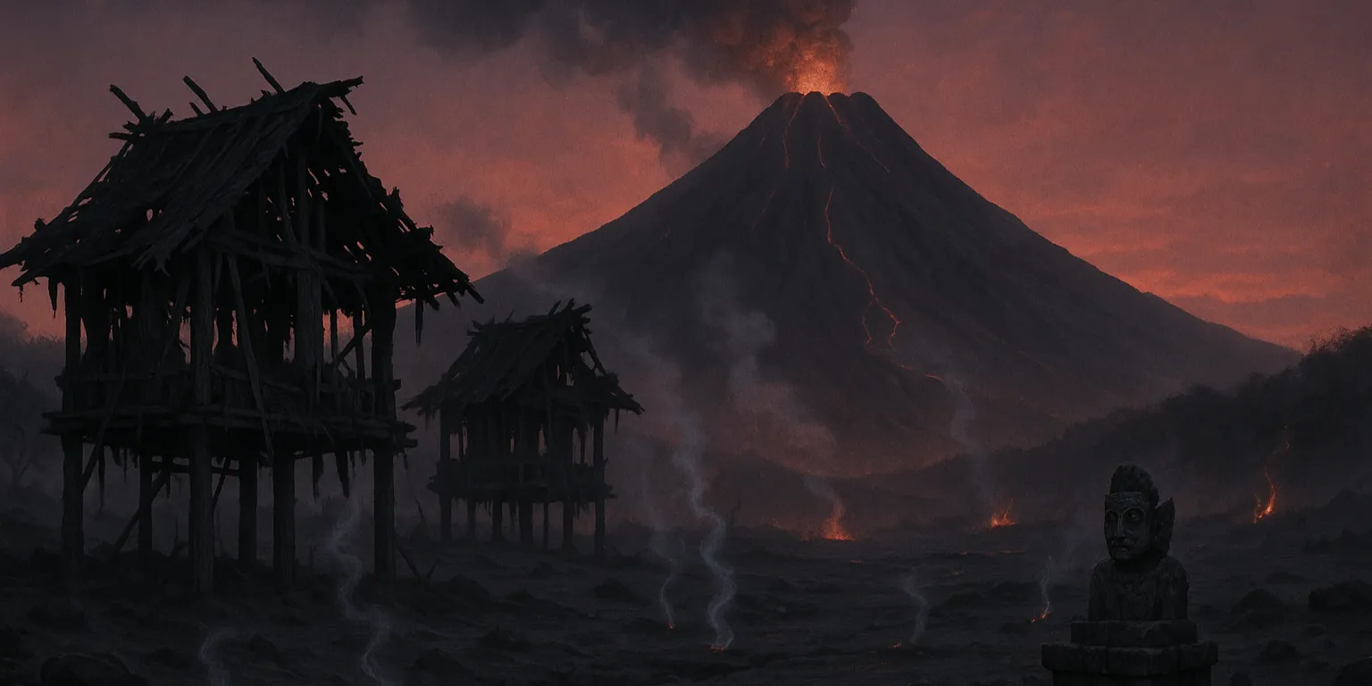 At night, phantom flames rise from the island, and the smell of smoke drifts across the sea. Within the fires stand the spirits of the dead, each marking the place where they fell. They stare at any who come near - unblinking, alien, silent, and terrible. Their wounds are plain to see, their faces twisted in agony, yet no sound escapes them. They simply stand within the fire until dawn extinguishes it.