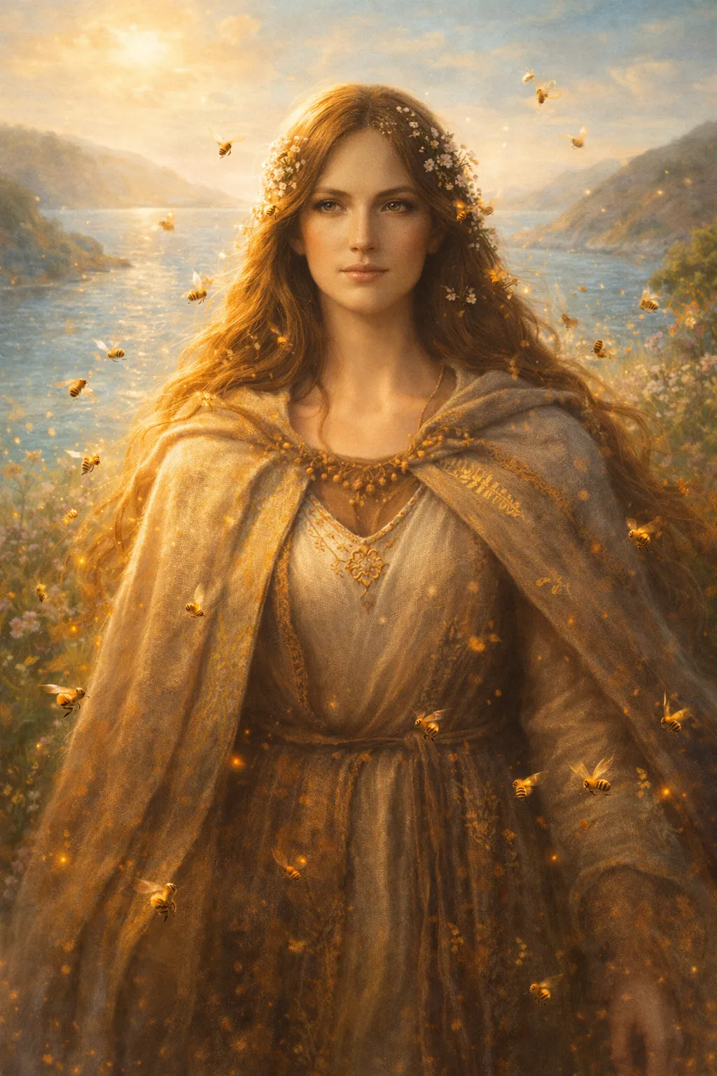 Located on the eastern coast of Ynys, the Bay of Bees is named for the great number and variety of bees that live along its shores and on the many small islands within the bay. Humans have kept bees on this coastline for as long as they have lived there, and from their imaginations, as well as from the steady, collective thoughts of the bees themselves, a goddess has arisen. That goddess is known as Luzi of the Bees. She is the queen of hives, ruler of all the honey-makers and beekeepers of the Bay of Bees.