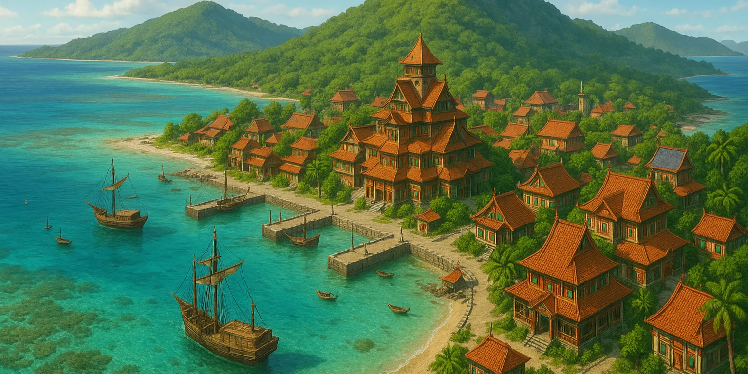 The largest settlement on the island is Ustu'tun, a port located on the southern coast with a deep natural harbor. Ustu'tun is the capital of the Kedatuan Naril and a common stop for merchants traveling between the Paminta Archipelago and the Mekonggan Archipelago. The interior of the island is largely agricultural, producing sugarcane, coconuts, bananas, and plantains. The island is also known for its unique variety of orchid, from which a particularly fragrant type of vanilla can be derived. This flower grows only in certain, secret parts of the island, making the supply of vanilla quite limited - but this scarcity has enhanced its value to foreign merchants.