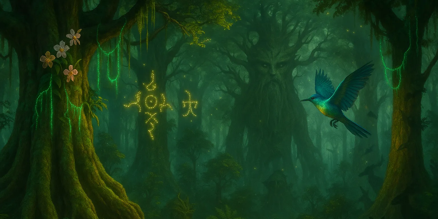 Among the most renowned denizens are the Tagnihi - hive-dwelling fireflies whose dances reveal glimpses of the future. They dwell only in the forest's deepest heart, where the canopy is so thick the ground lies in perpetual twilight. Reading the patterns of their dance is an art that takes years to master, but once learned, their movements are said to foretell events with uncanny accuracy.