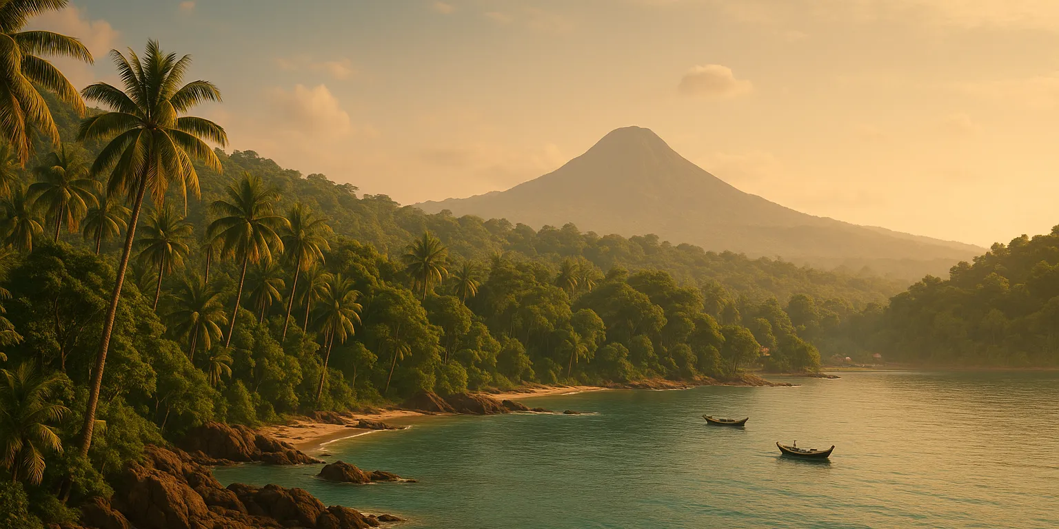 Remad is approximately forty-six miles long and forty-two miles wide. The northern part of the island has been largely cleared for farming, with coconuts, cashews, coffee, cocoa, and cloves as the primary crops. The southern portion remains heavily forested and is home to an astonishing variety of songbirds. The locals call this region the Rimba Nyanyia, or "Forest of Song."